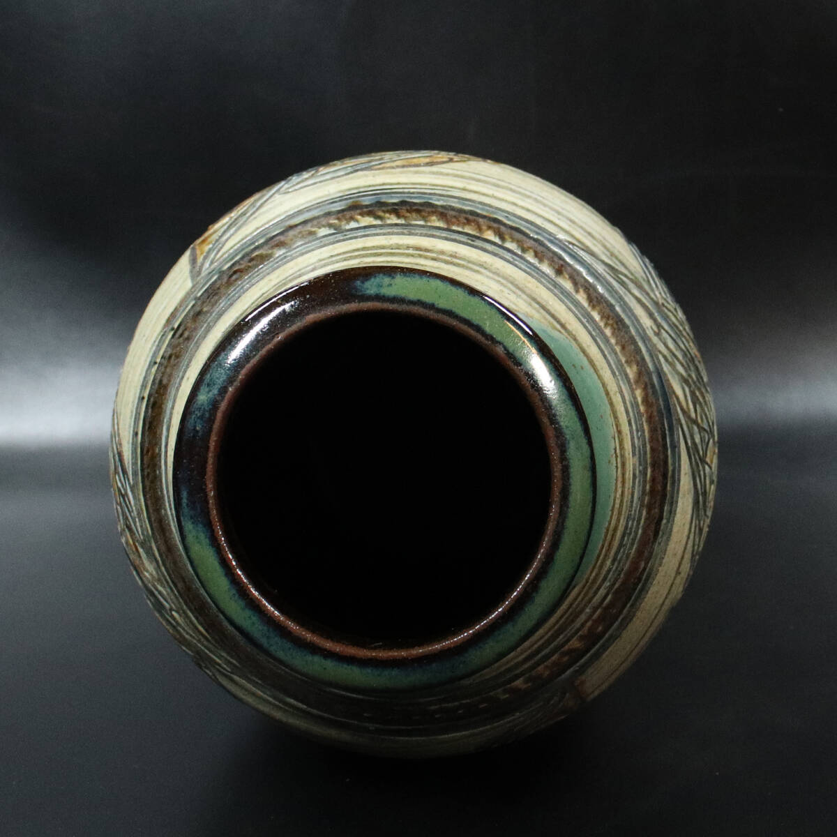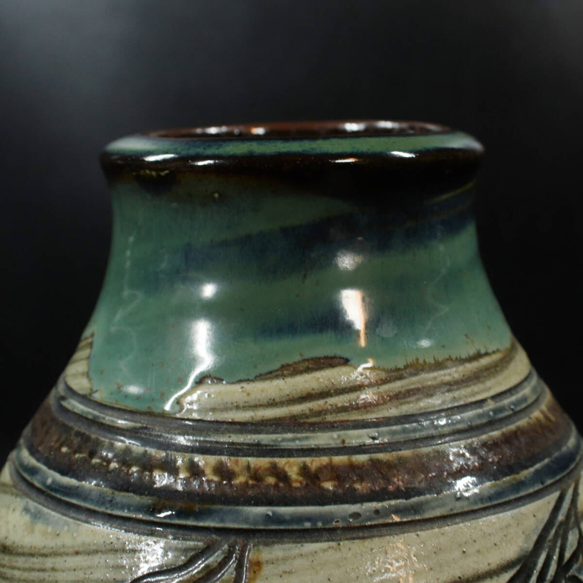 首の部分に掛けられた青釉は沖縄の海を想起させ、