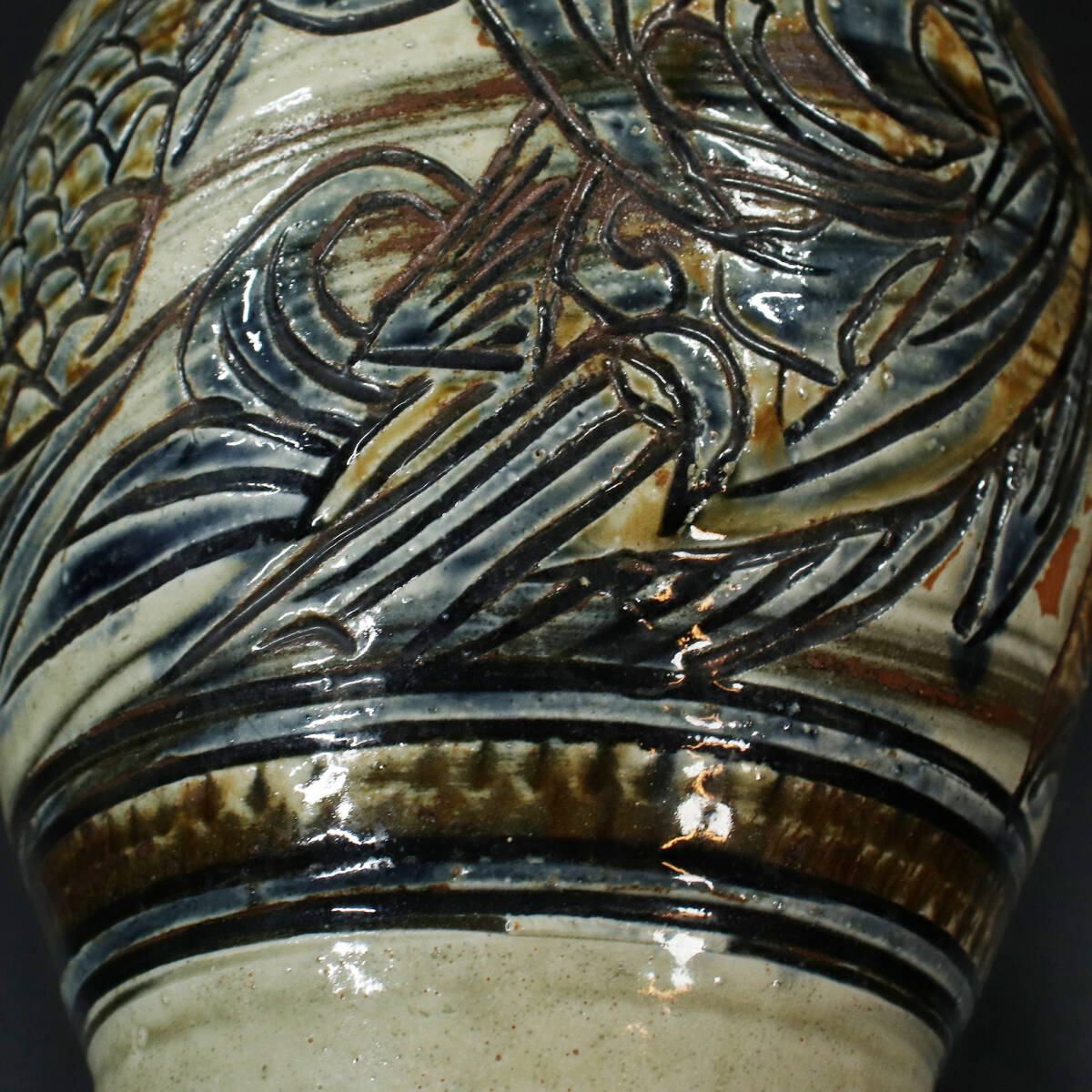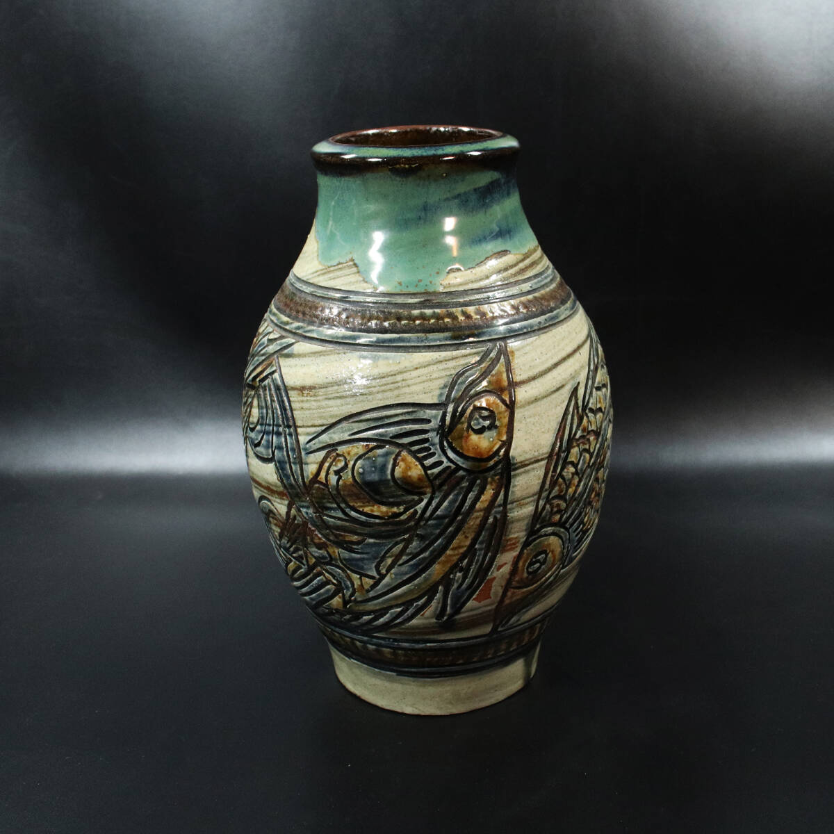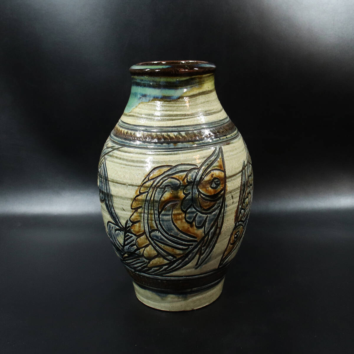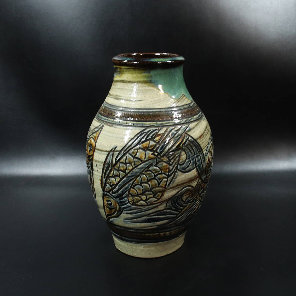 器の表面に彫り込まれた4尾の魚は、いっそ踊り出さんばかりの生命力と躍動感を感じさせる。