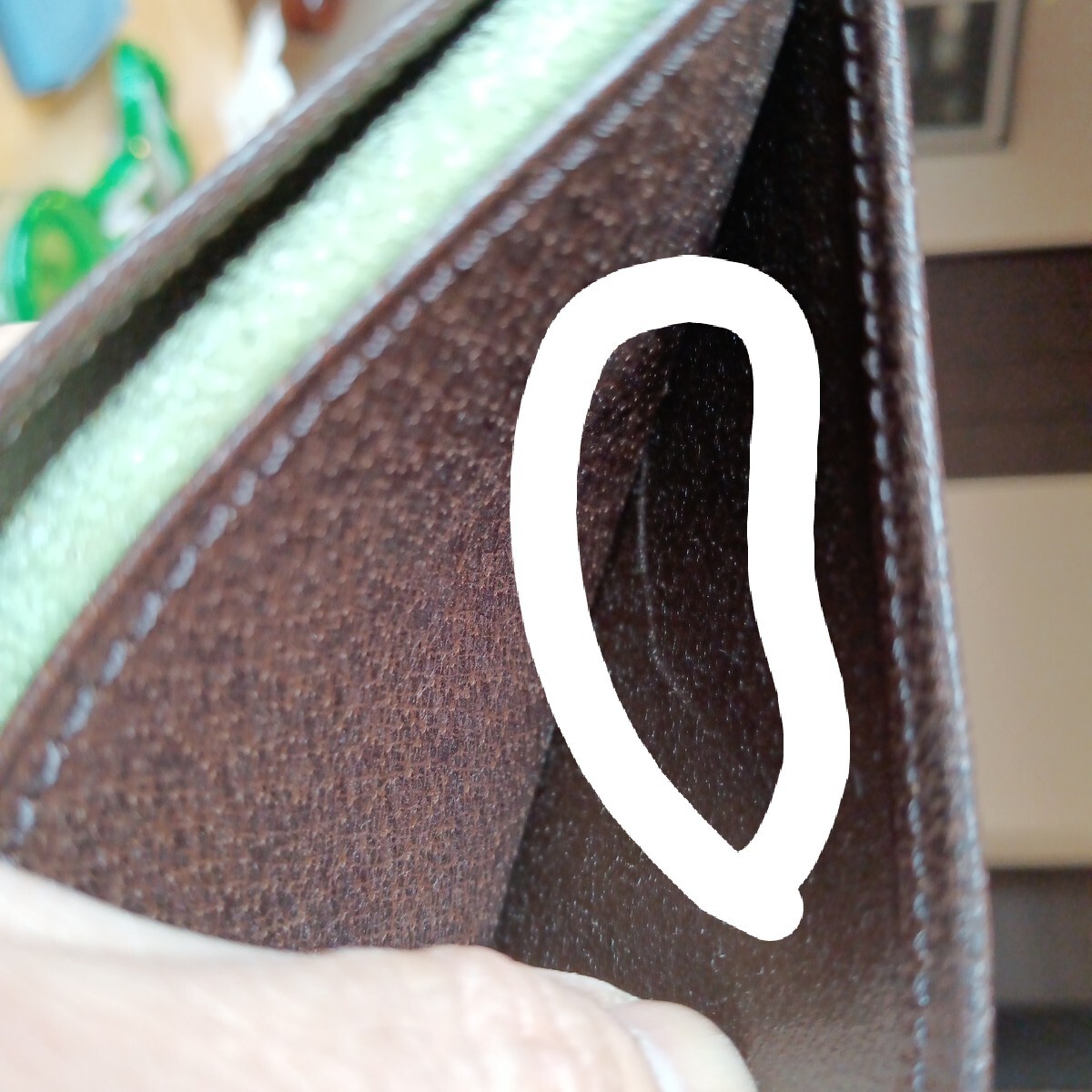 未使用ですが、財布のお札を入れる内部に引っかき傷(長さ5〜6cm細い傷)があります。