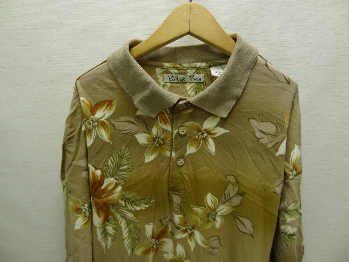全国送料無料 USA アメリカ古着 Batik Bay メンズ 綿100%素材 南国花柄 半袖 ポロシャツ XLサイズ