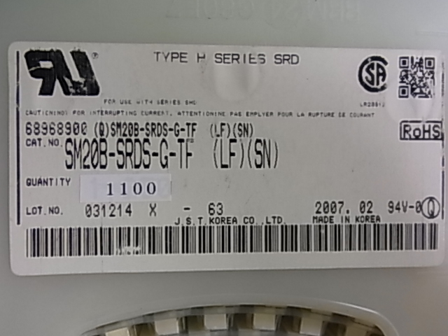 JST 面実装L型1mmピッチ20-ピンコネクター SM20B-SRDS-G-TF 100個- [管理:BOX111-1,000個]