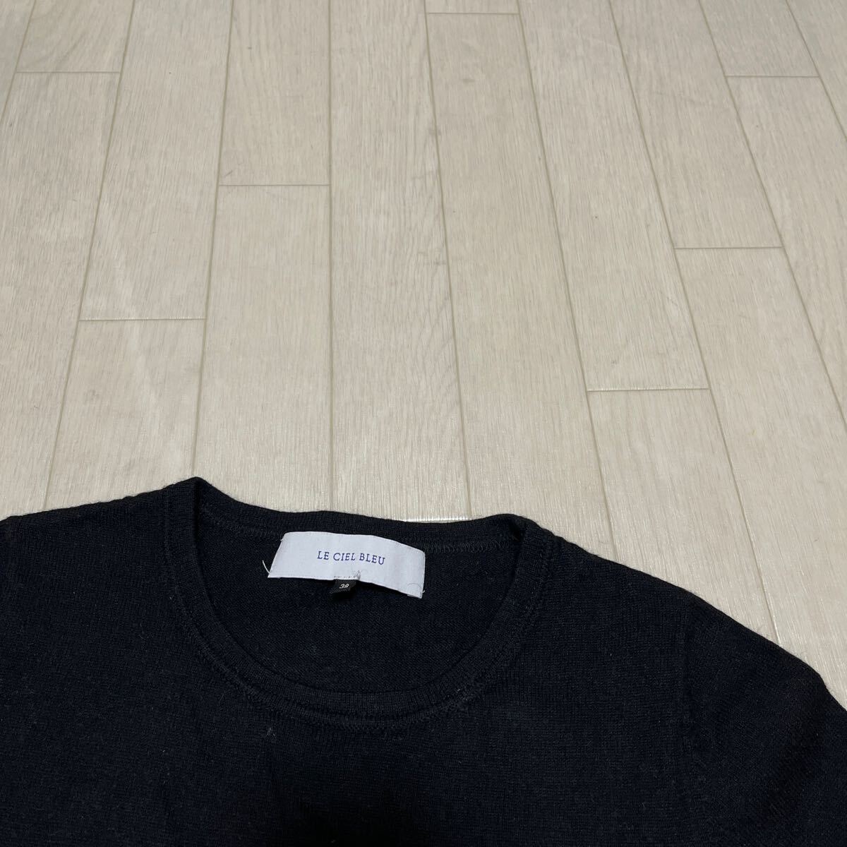 和698★ LE CIEL BLUE ルシェルブルー 半袖 ニット セーター シンプル 38 ブラック レディース カシミヤ混