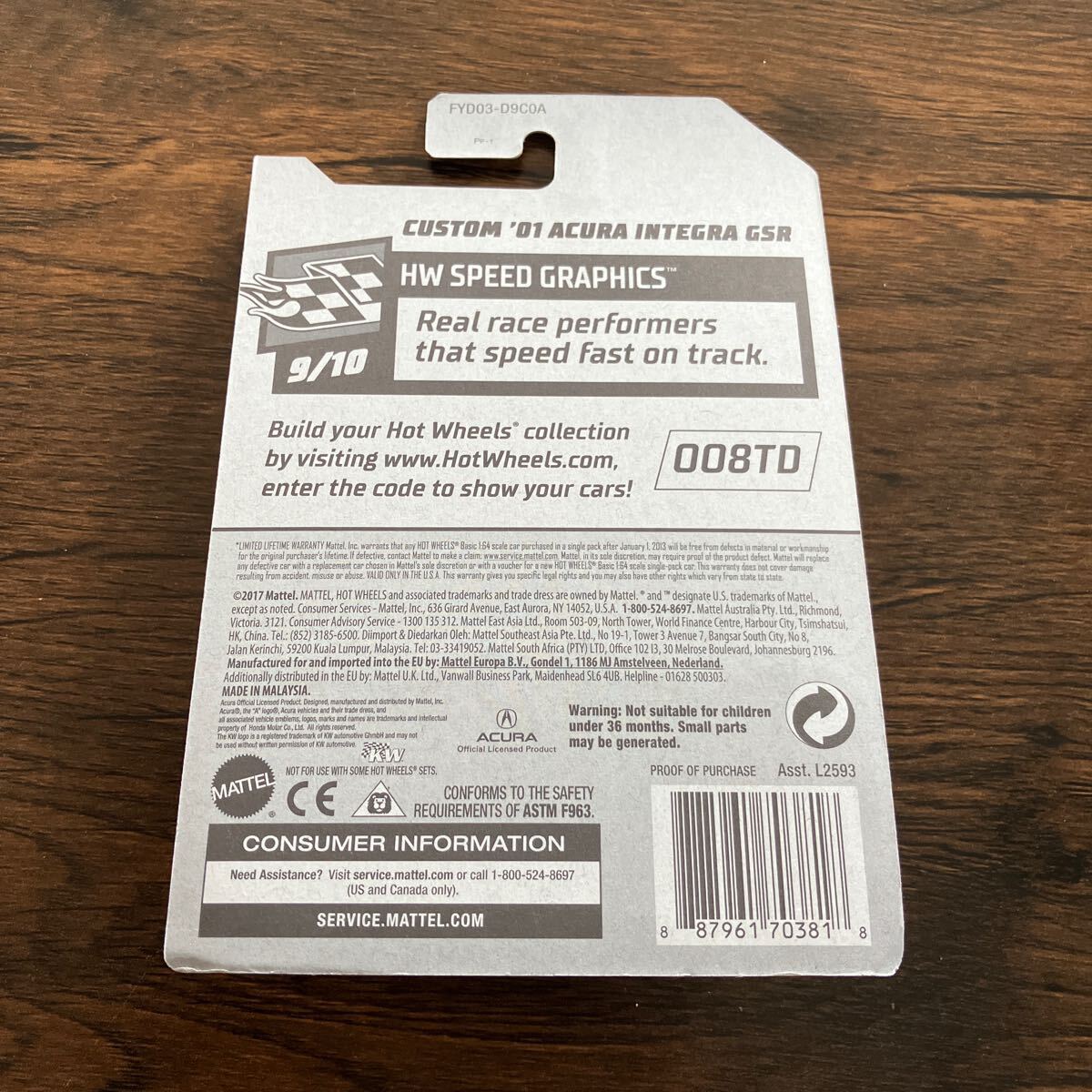 ホットウィール Hot Wheels CUSTOM '01 ACURA INTEGRA GSR アキュラ インテグラです。