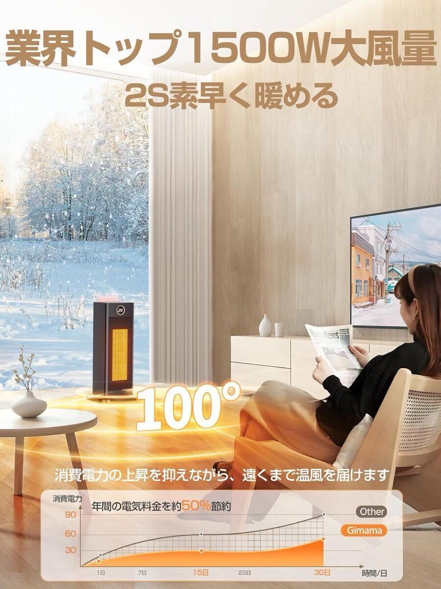 【想像を超えた大風量・2S速暖】Gimamaのセラミックヒーターはコンパクトなサイズ感ながら、エネルギーが非常にパワフル、市販1200Wのファンヒーターと比べて、本製品は1500Wのハイパワーを誇り、暖房範囲も30%広がっています。さらに、100°首振り機能を備え、移動せずに部屋全体の隅々に温かさを素早く届けます。プロ仕様のPTCセラミック発熱体を内蔵、加熱速度と効率が速い、電源を入れてすぐに温風が2秒間発生します。肌が冷えている時や朝起きた時、帰宅時など、すぐに暖かくしたい時に適用です。セラミックファンヒーターは天然ガスや石油などの燃料も使わないので有害ガスも出ず、換気も不要、環境に優しいです。高齢者や子供のいる家庭でも安心してご使用いただけます。