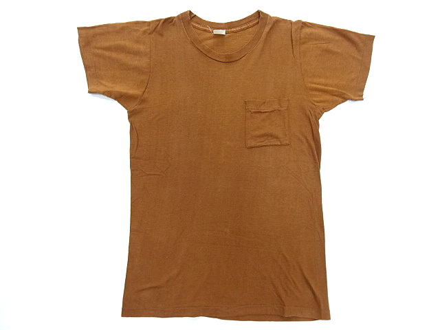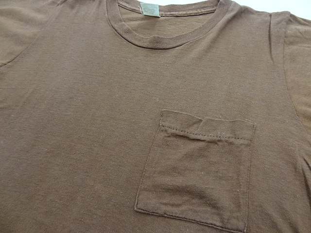 ビンテージ フルーツオブザルーム 80S USA ブランド コットン レア カラー 茶 ブラウン 無地 スクエア ポケット Tシャツ ポケT 希少 色 珍