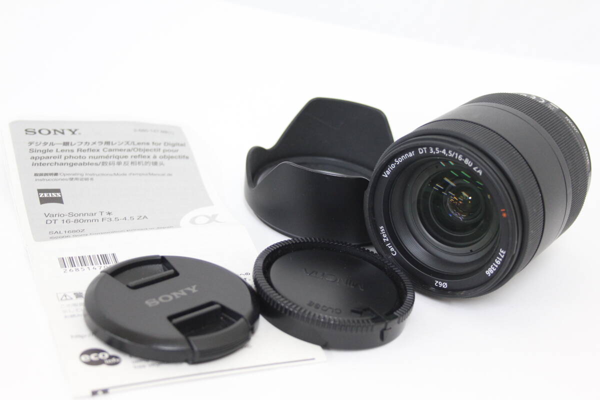 【美品 返品保証】 ソニー SONY Carl Zeiss Vario-Sonnar DT 16-80mm F3.5-4.5 ZA T* フード 前後キャップ付き レンズ M4910