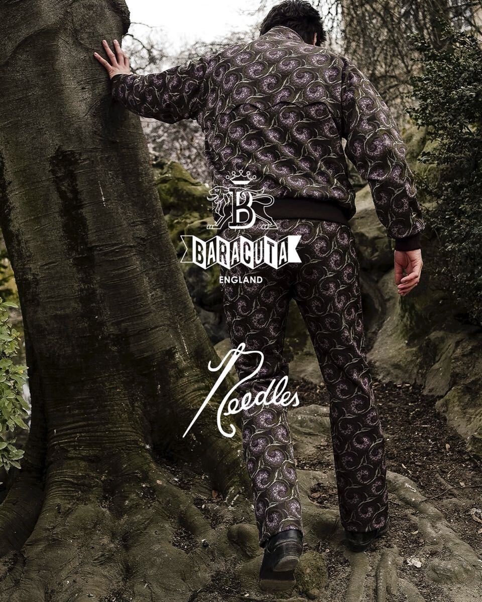 NEEDLESの2023SSコレクションから、オリジナルのポリエステルジャカード素材を使用した、BARACUTAとのコラボレーションのウォームアップパンツ。デザインに干渉しないコンシールジップポケットを備えた、機能性と洗練されたルックスを兼ね備えたアイテムです。ポケットの裏地に使用されているメッシュ素材には、BARACUTAの象徴にもなっている"フレイザータータン"のパターンを採用しています。