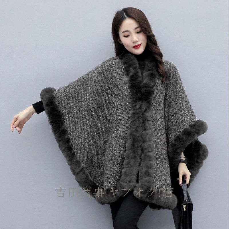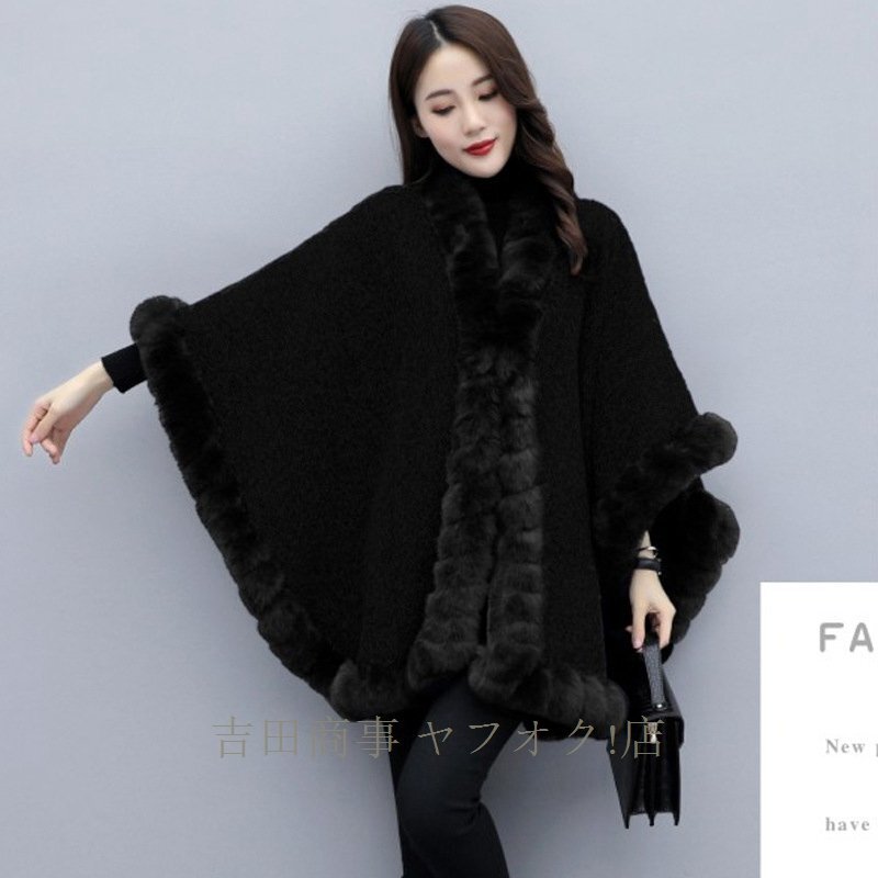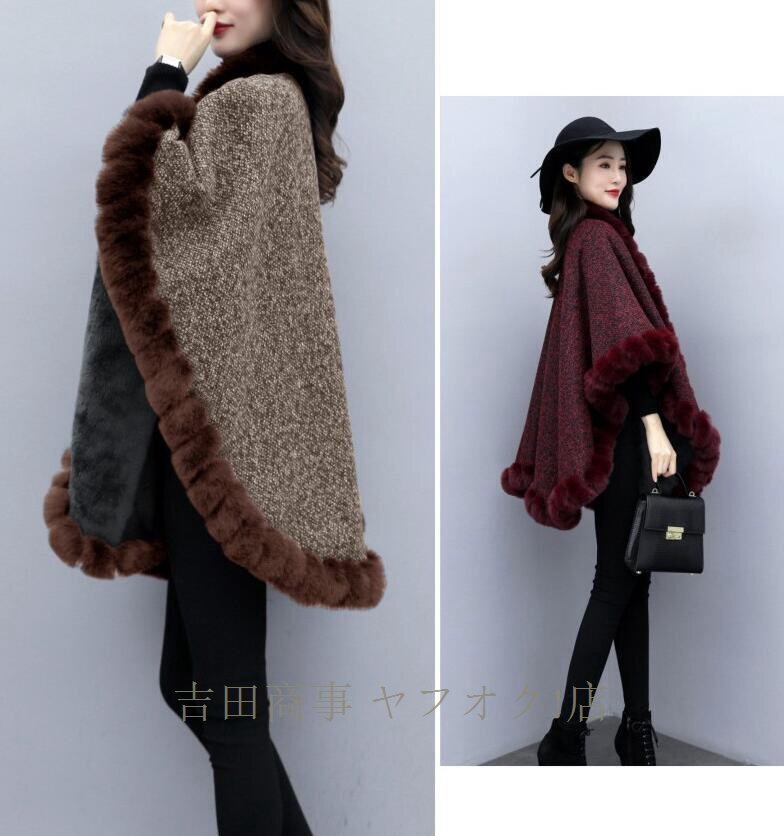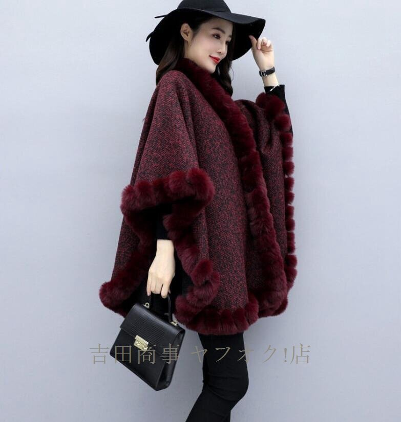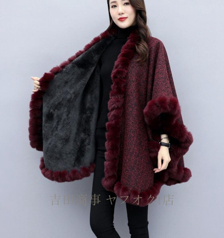 ☆新品ポンチョ レディース ポンチョ コート 裏ボア 暖か マント ケープ アウター ショール 大判ストール 裏起毛 赤