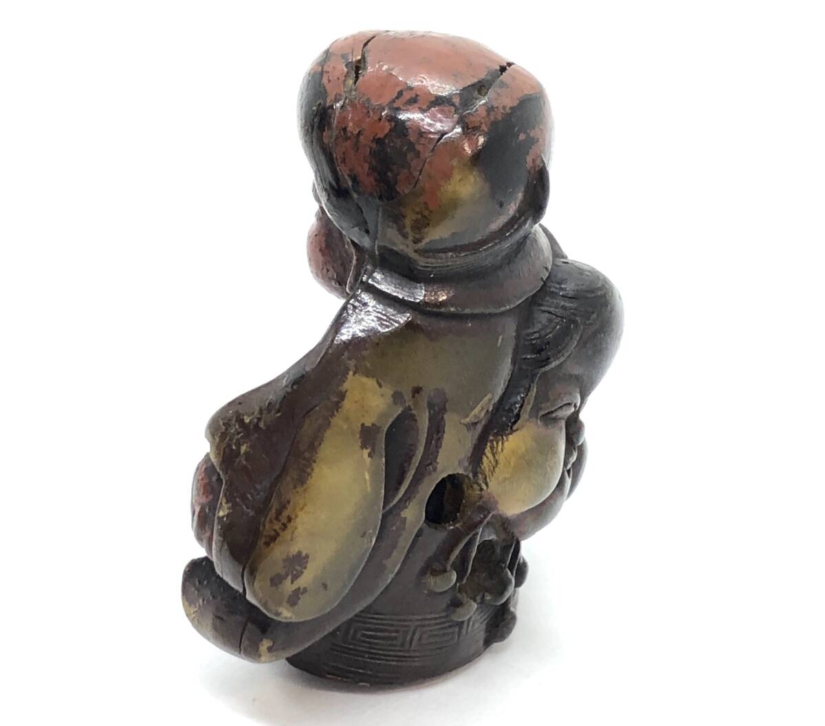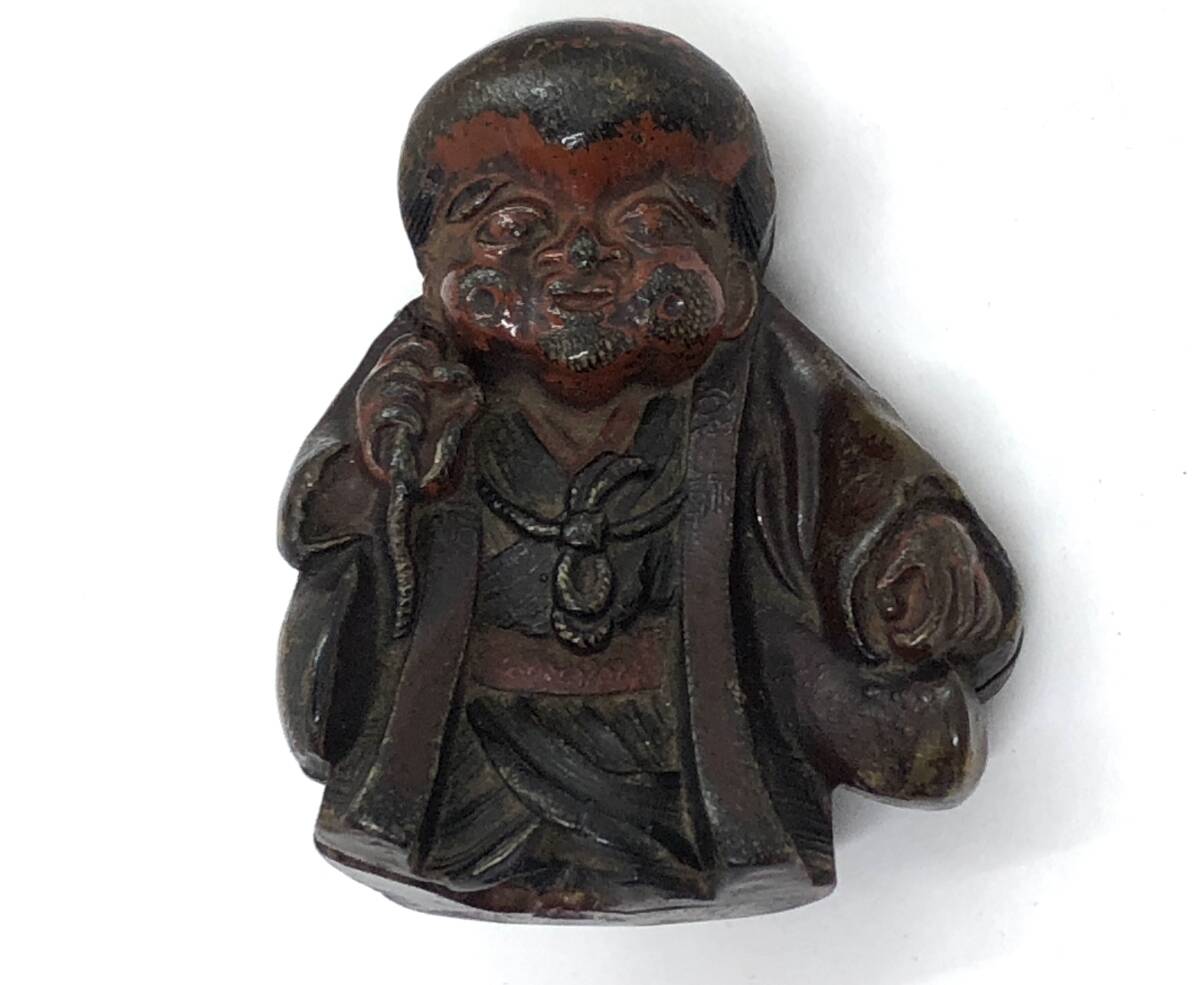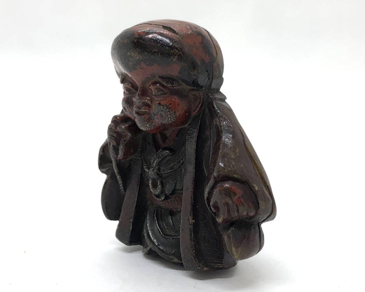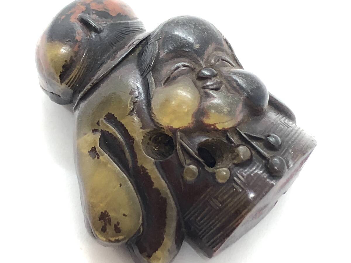 根付 福助 漆塗 細密彫刻 提げ物 時代物 古美術 置物