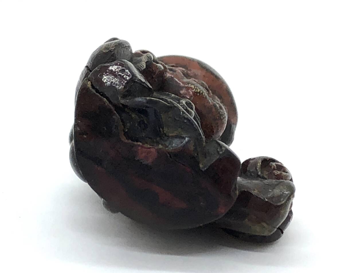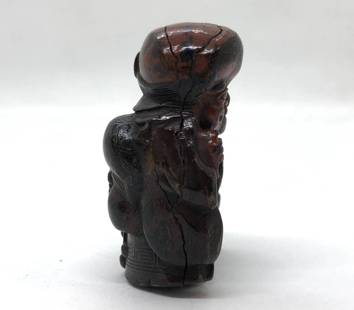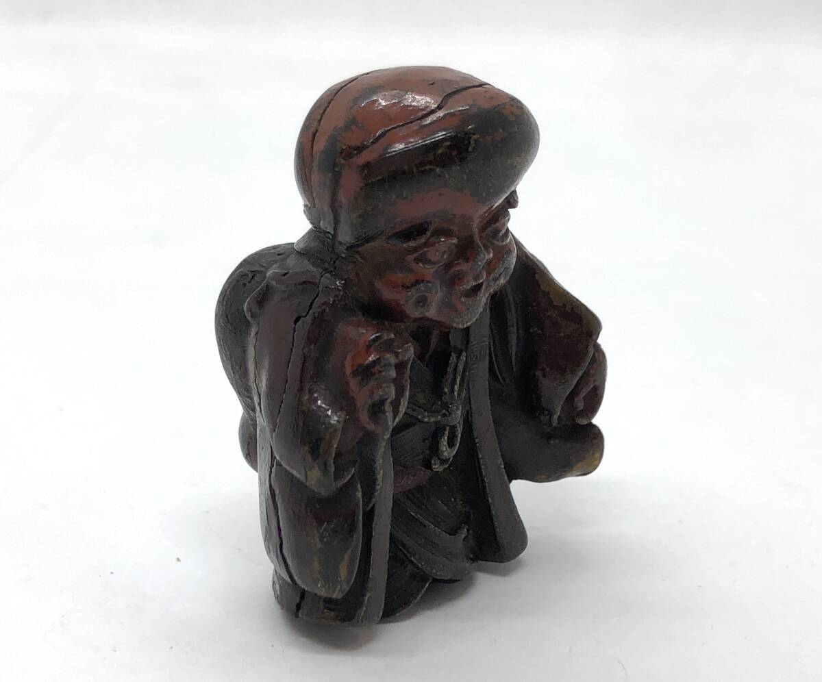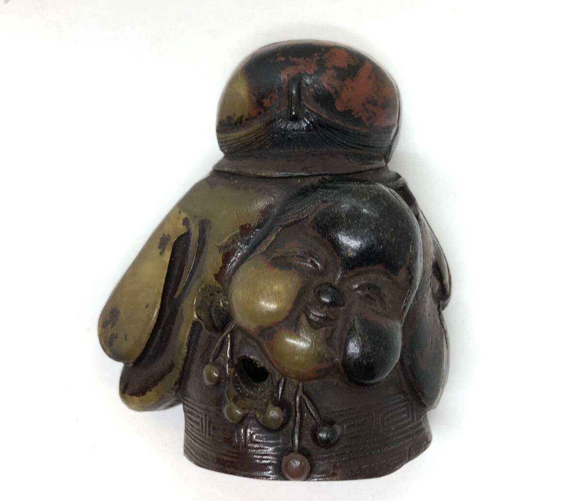 根付 福助 漆塗 細密彫刻 提げ物 時代物 古美術 置物