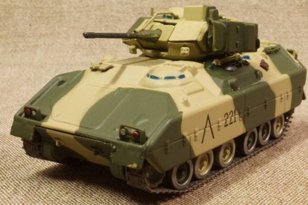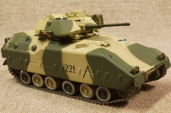| ★ALTAYA アメリカ歩兵戦闘車M2ブラッドレイ(M2 Bradley 24th Mechanized Cavalry Dibision SaudeArabia - 1991) 1/72 です。 25ミリ機関砲とTOW対戦車ミサイルを主兵装とするアメリカ陸軍の歩兵戦闘車です。 メカニカルな外装がカッコいいです。 メーカー:ALTAYA 材質は金属(ダイキャスト 一部プラスチック部品あり) 透明ケースと台座が付いてます。 | |