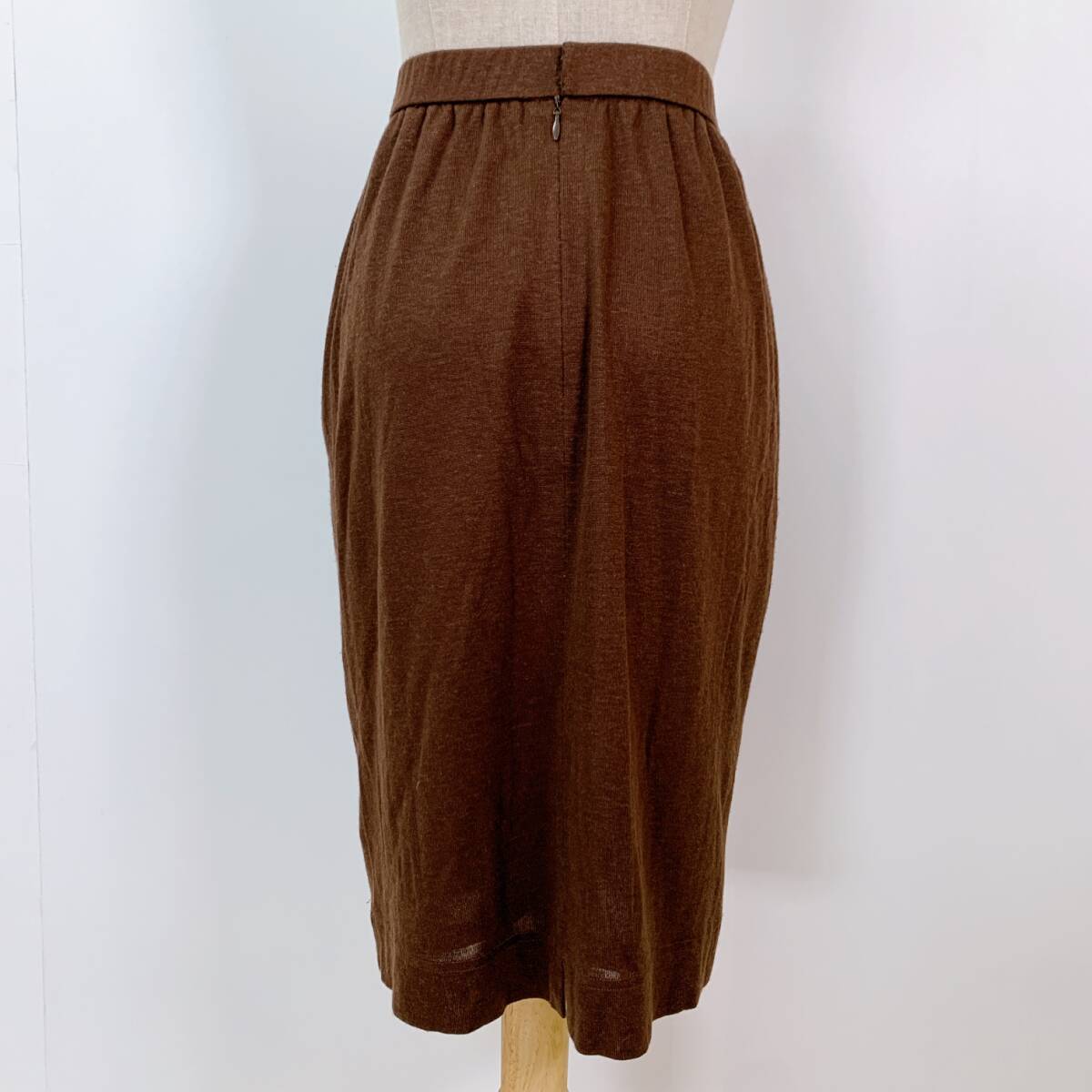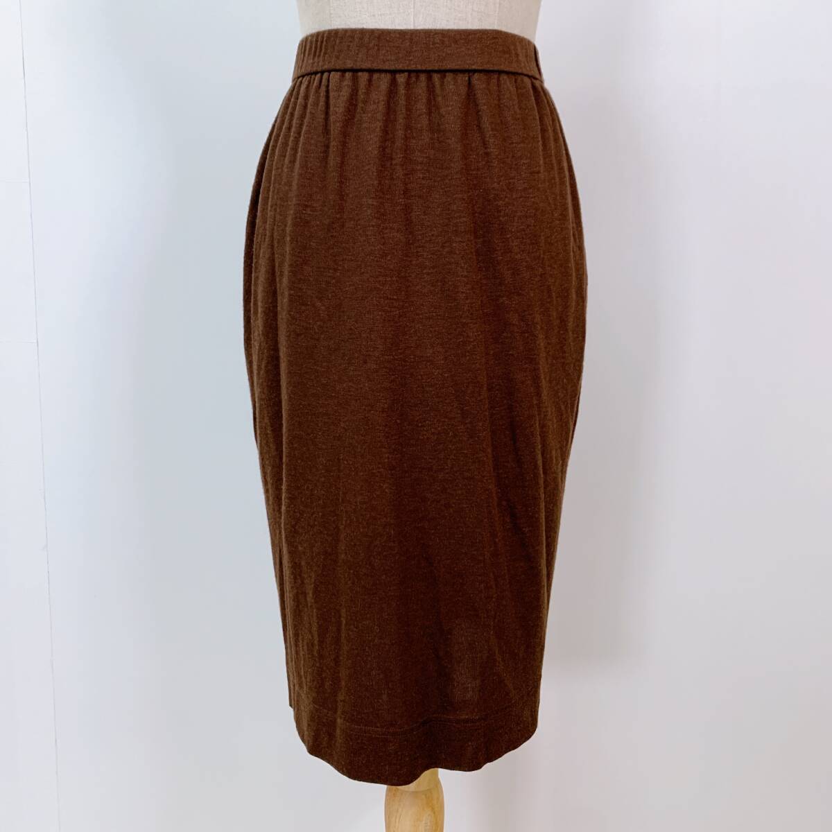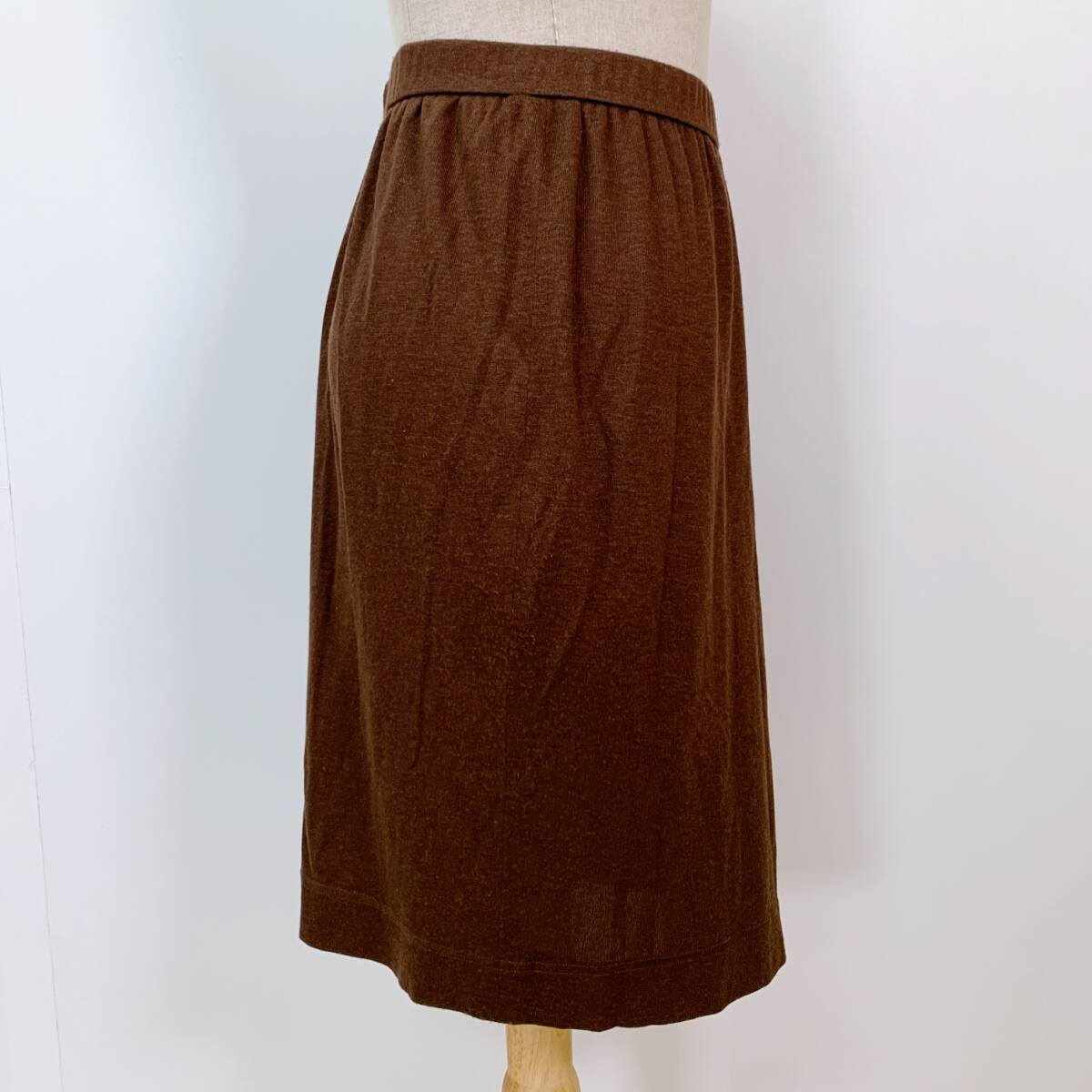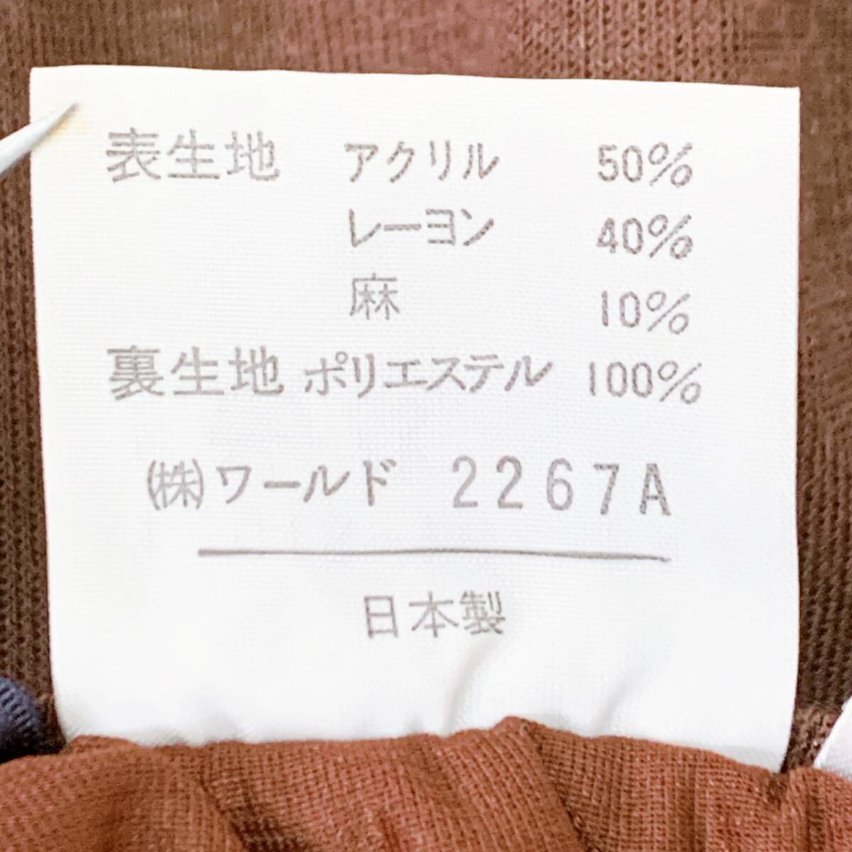 YH0910 CORDIER レディース 麻混 ひざ下丈 スカート ブラウン 茶 40サイズ 無地 ウェストゴム スリット シンプルスカート 薄手 万能 USED