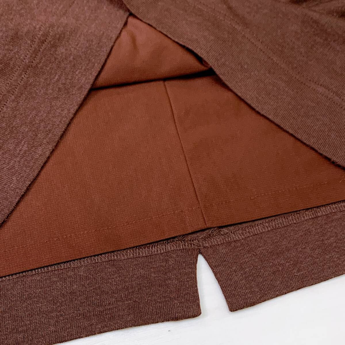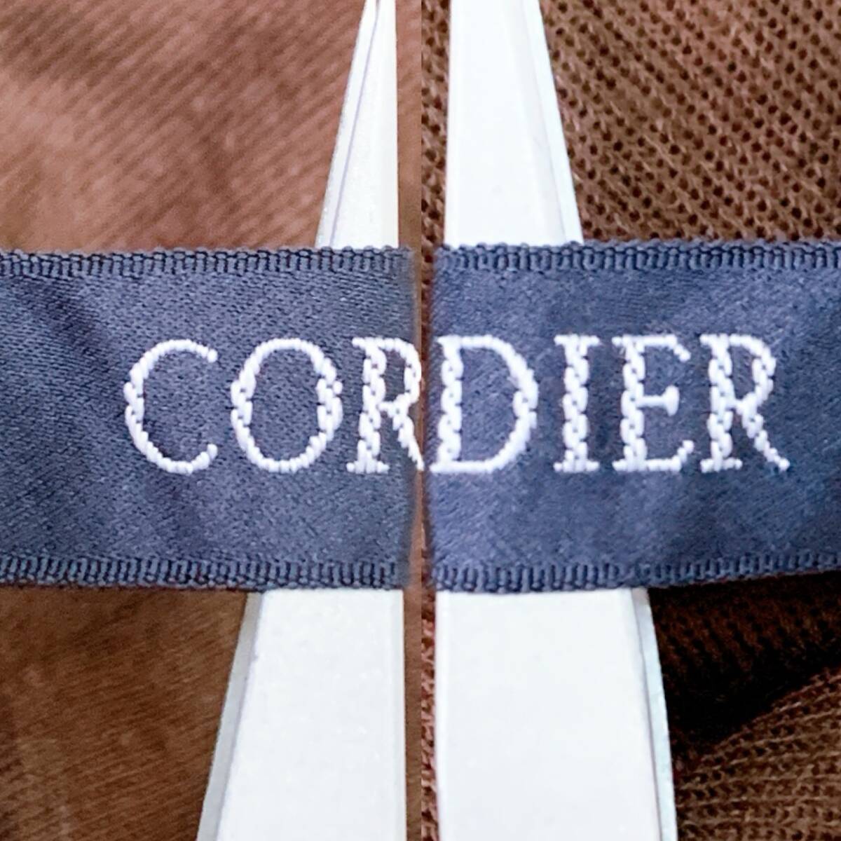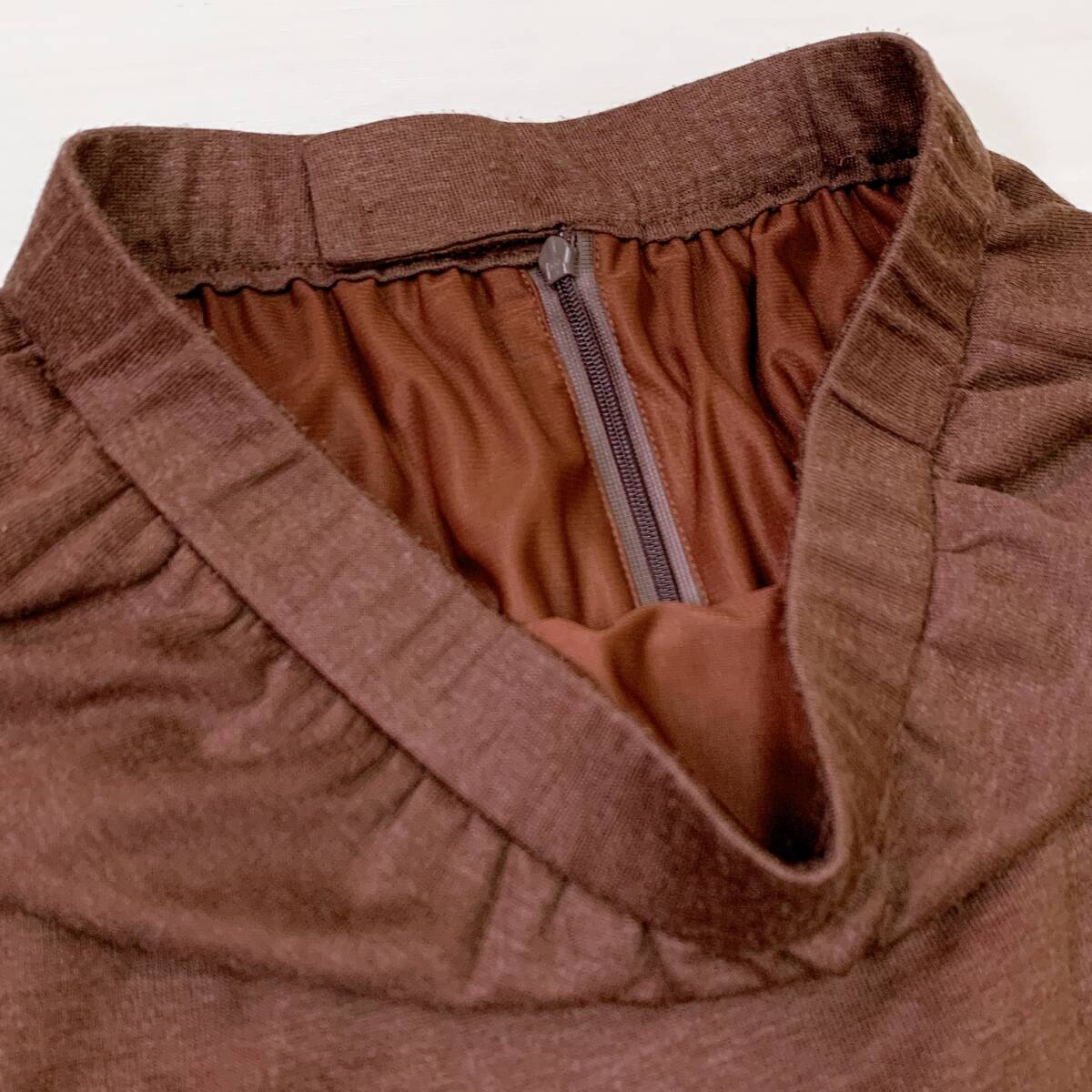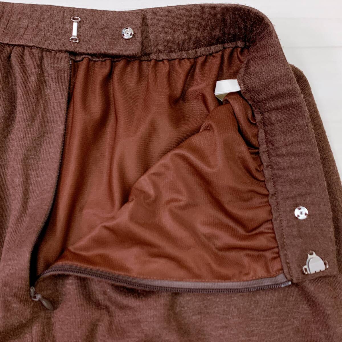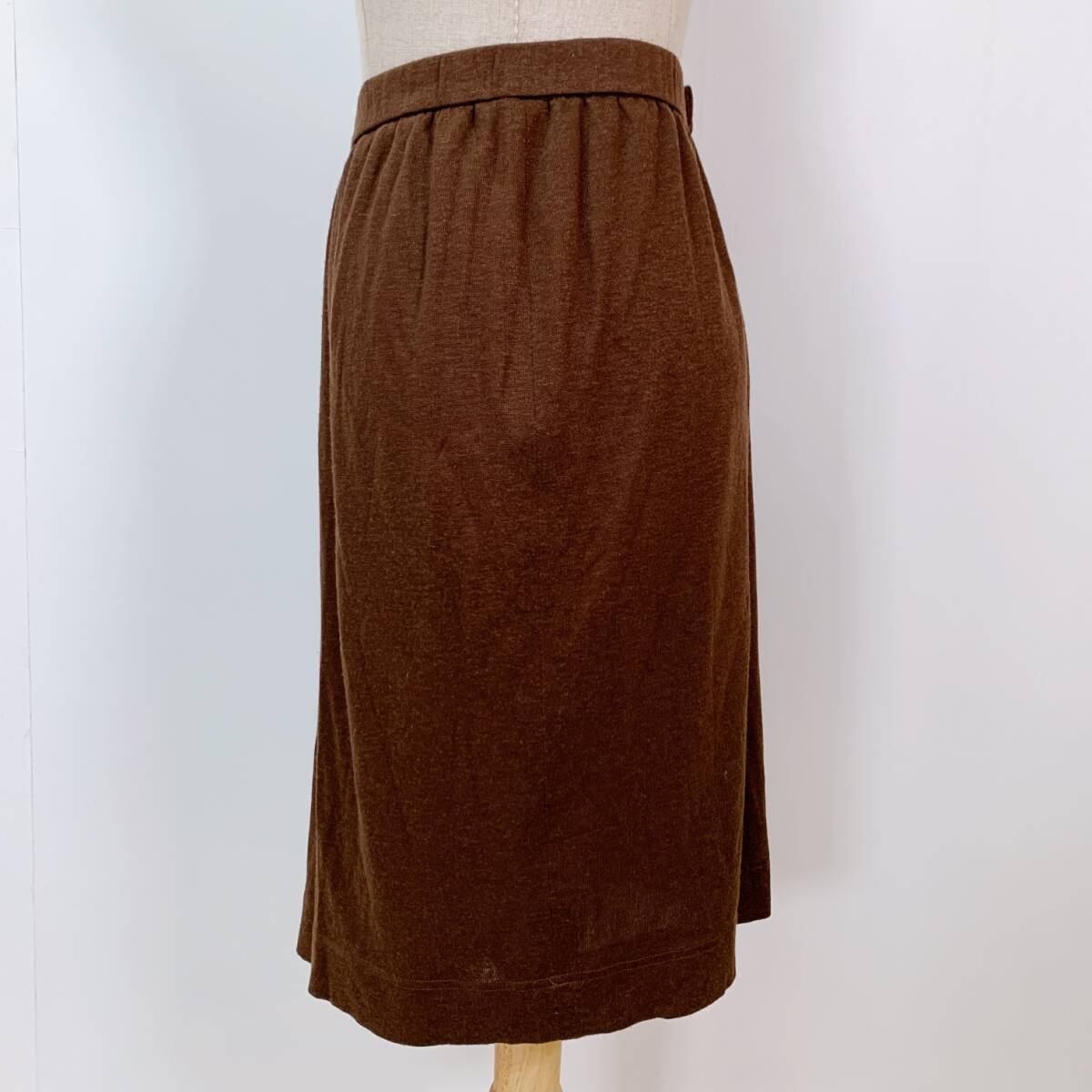 YH0910 CORDIER レディース 麻混 ひざ下丈 スカート ブラウン 茶 40サイズ 無地 ウェストゴム スリット シンプルスカート 薄手 万能 USED