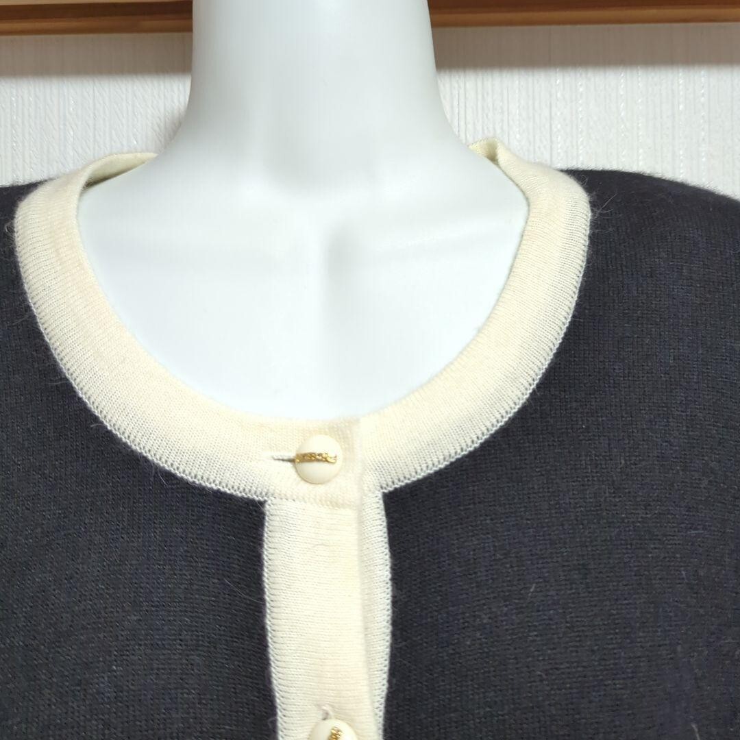 【お願い】 こちらのお品は、他のサイトにも出品しています。 ご購入前には、お手数ですが、在庫確認のコメントをお願い致します。 【商品説明】 インゲボルグらしい、上品な女性らしさがあり、着回しの出来るデザインのカーデガンです。 肩パット付き。 白いボタンに、金色のインゲボルグの文字が乗っていて、高級感があります。 トルソーは9号です。 タグに、サイズ表記はありません。 インナーを入れて着ると素敵なデザインなので、M~Lという感じで、Mよりやや大きい感じです。 ニットで伸縮するので、細かな採寸は致しません。 年代物ですが、個人的には状態はややきれいめという気がします。 特筆すべきダメージはありませんが、トリミング部分のベージュが、やや経年で黄ばんでいるようにも見えますが、新品と比較出来ないので断言出来ないです。 新品レベルをお求めの方、些細な部分まで気になる方はご遠慮下さいませ。 季節...秋冬