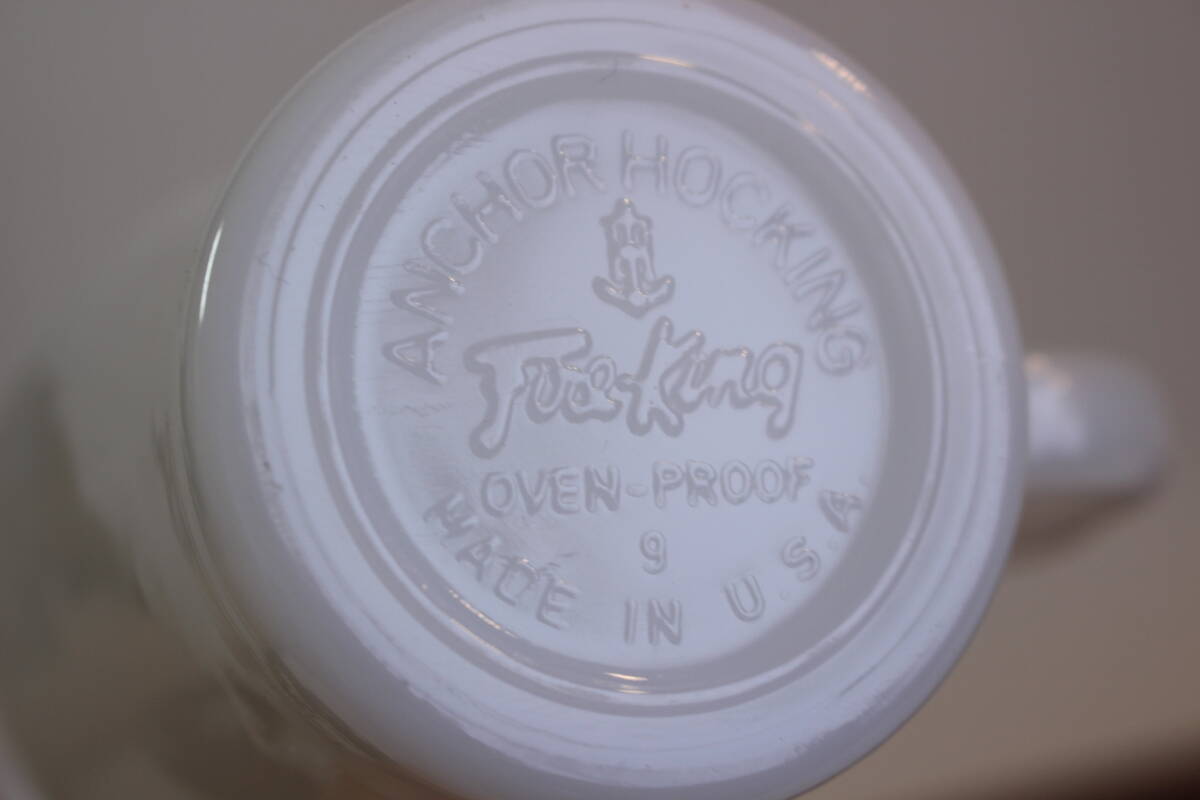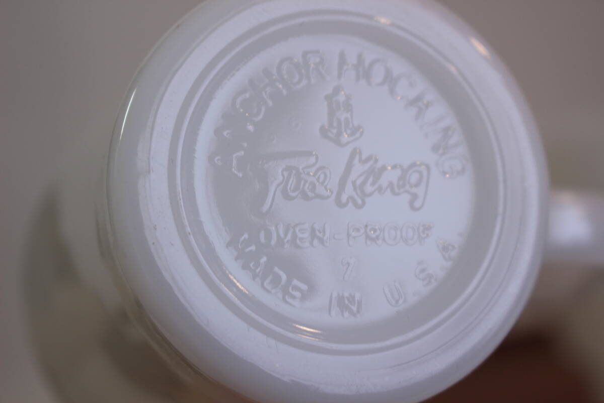 刻印は、【ANCHOR HOCKING アンカーマークFire-King OVEN-PROOF MADE IN U.S.A】1960年代~1976年頃のものです。