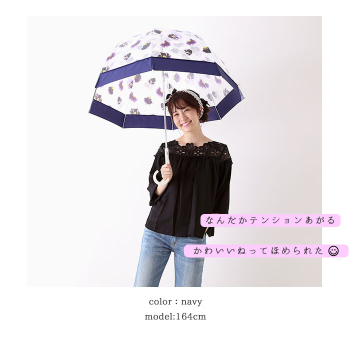 注意点 | ※傘を開く際は生地を十分にほぐしてからゆっくりと開けてください。 ※ハンドクリームや日焼け止めクリーム等が、生地・ハンドルの色落ちの原因になる場合があります。 ※強風の時は破損の恐れがありますので使用しないでください。 ※傘生地には防水はっ水加工を施し、縫製にははっ水糸を使用していますが、激しい雨や長時間のご使用では雨が染み込むことがございます。また、飾り加工部分(刺繍、ステッチ、パイピング等)は、デザインの特性上完全な防水はっ水加工が難しい場合があり雨が染みやすいのでご注意ください。 ※降水量が20mm以上の場合、ある程度使用されますと漏水の恐れがありますのでご注意ください。 ※ポリエチレン透明生地を使用しておりますので使用頻度により、くもりやかすれが発生することがございます。 ※カメラやモニターの性質により、画像と実物の色の違いがある場合がございますのでご理解願います。 |