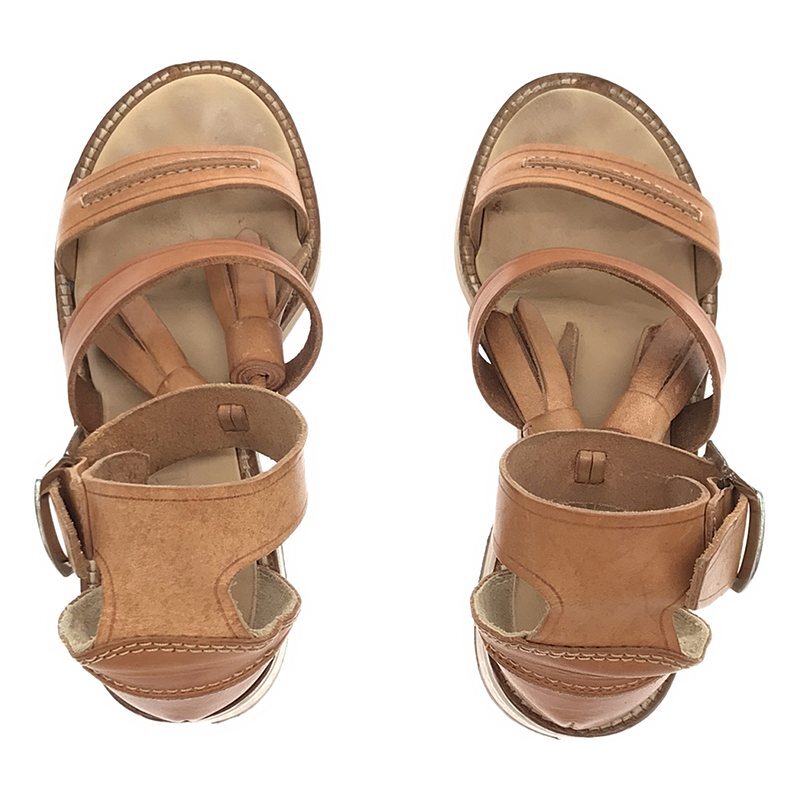 Acne / アクネ | レザー タッセル ストラップサンダル | 35 | ベージュ | レディース