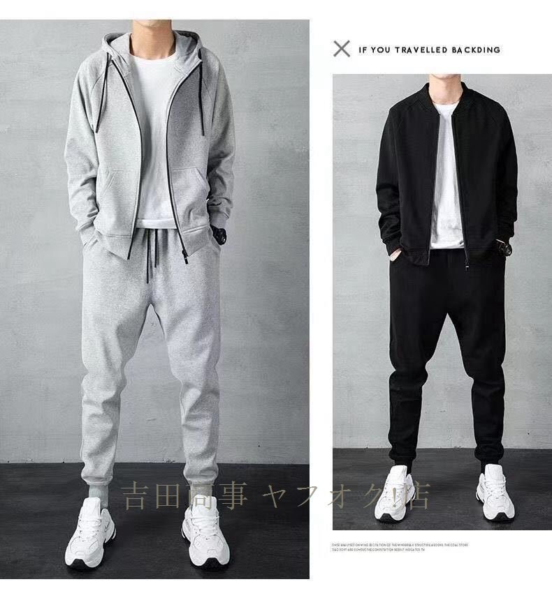 A8345☆新品メンズ セットアップ アウター+ズボン 2点セット 上下セット スポーツウエア フード付き 大きいサイズ 長袖 春秋