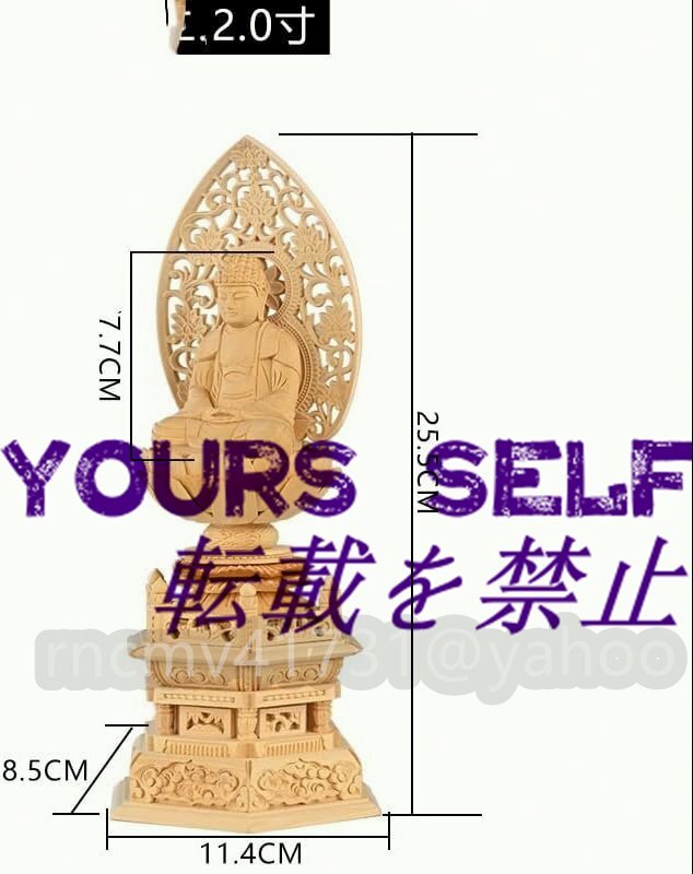 (曹洞宗・臨済宗・天台宗の本尊)は中国産の木彫仏である。仏壇用の本尊・厄除けのお守りとして、また趣のあるインテリアとして、毎日の暮らしの中で楽しめるサイズになっています。身の回りに置いておくことで、仏の慈悲や恵みの恩恵を感じることができるでしょう。暖かみのある空間の演出にご活用ください。