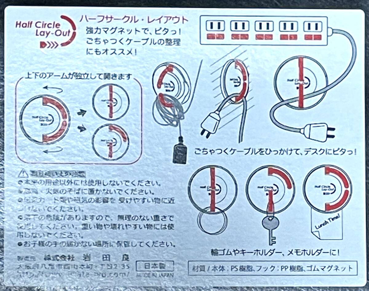 岩田良 ハーフサークル・レイアウト/Harf Circle LayOut ブラック/黒 輪ゴムホルダー マグネットフック 壁掛け 冷蔵庫 キッチン