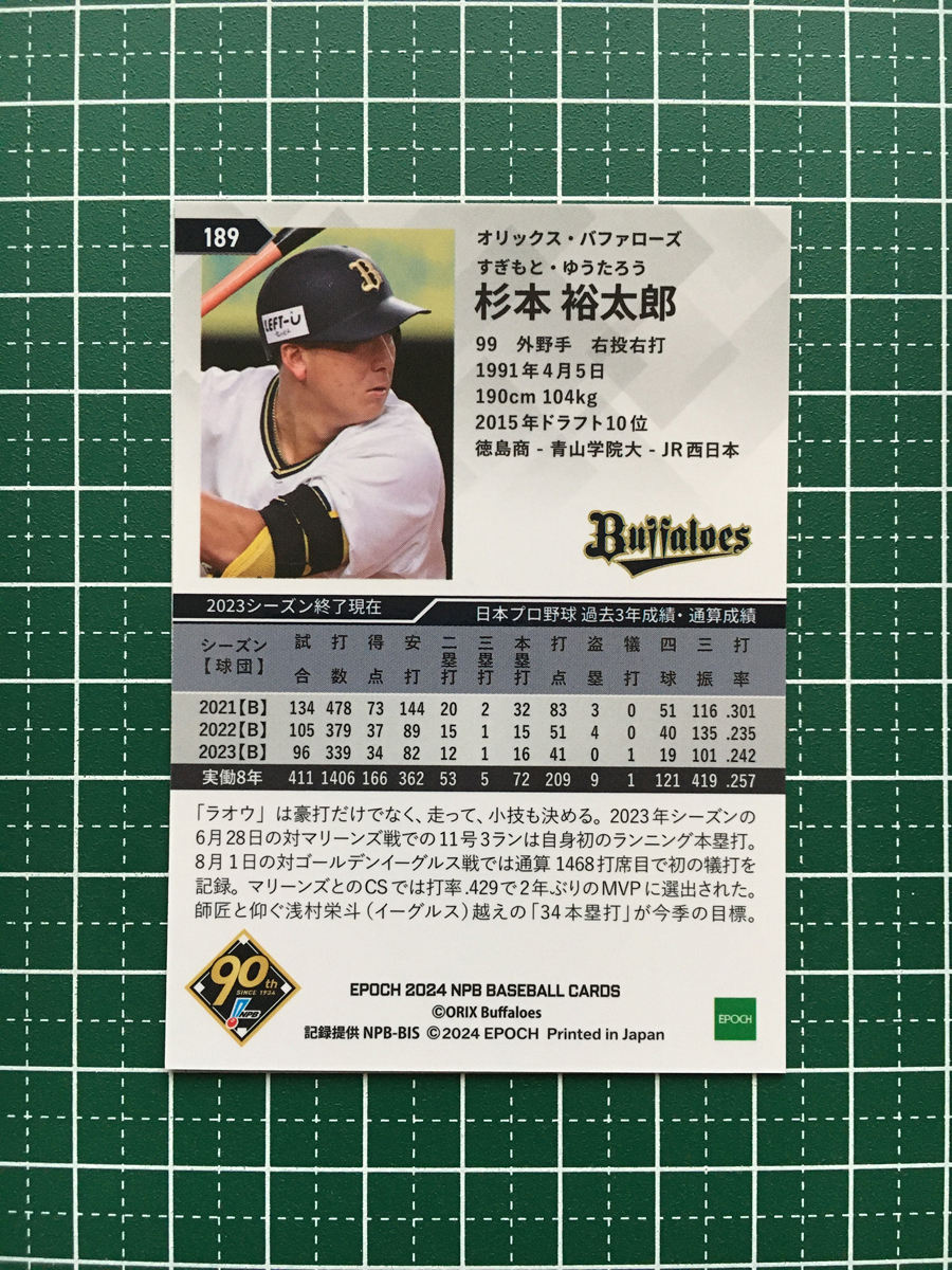 ★EPOCH 2024 NPB プロ野球カード #189 杉本裕太郎[オリックス・バファローズ]レギュラーカード★