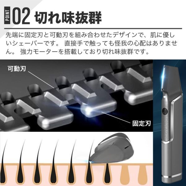 こんな悩みをお持ちではありませんか? 他社のT字型シェーバーでは、きれいに剃れない部分があります。 新世代のシェーバーは、この問題を解決します。 人間工学に基づいたデザイン「I」字型ボディシェーバーは、体のトリミングがしにくいところもきれいに整えることができます。例えば、脇の下、胸、背中、足などの敏感な部分の毛をトリミングするときに、効率的で快適な剃り心地を提供します今までにない体験ができるでしょう!
