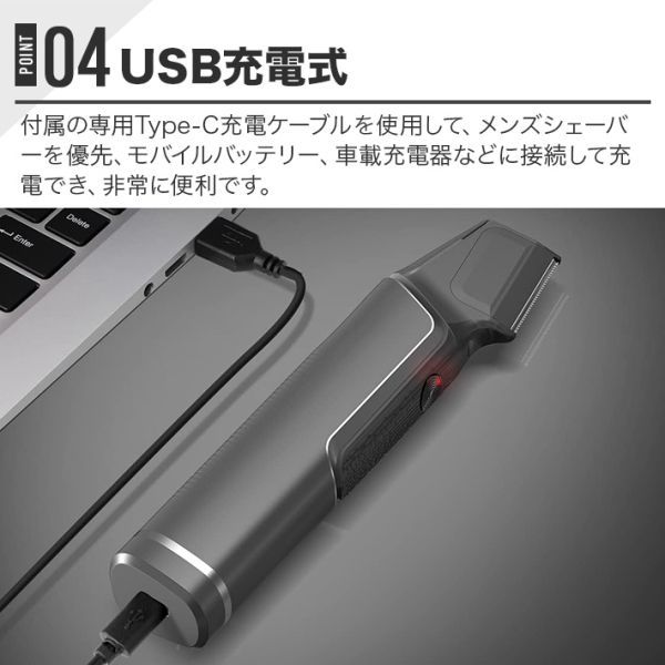 付属の専用Type-C充電ケーブルを使用して、メンズシェーバーを優先、モバイルバッテリー、車載充電器などに接続して充電でき、非常に便利です。また、騒音が少なく、心地よい剃り上がりを実現します。 収納袋も付属しており、旅行や出張の際にも快適に使用できます。ギフトにも最適です。