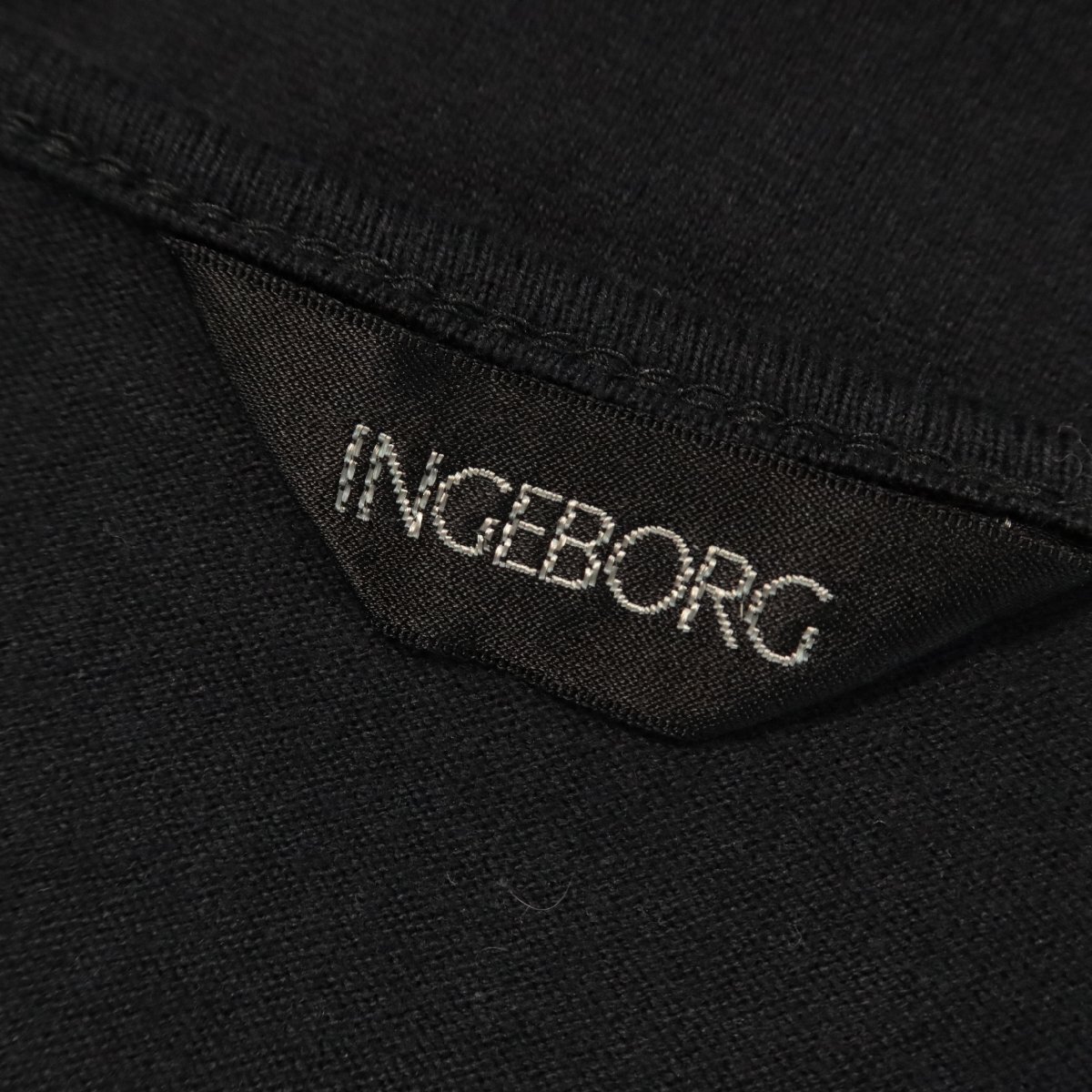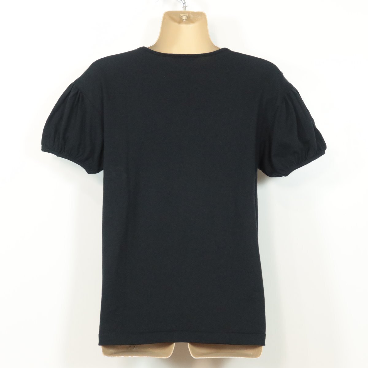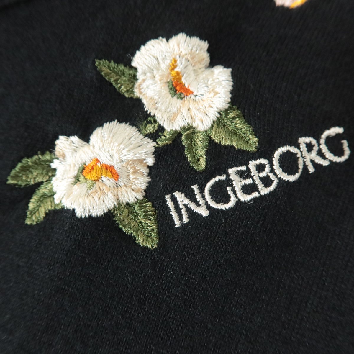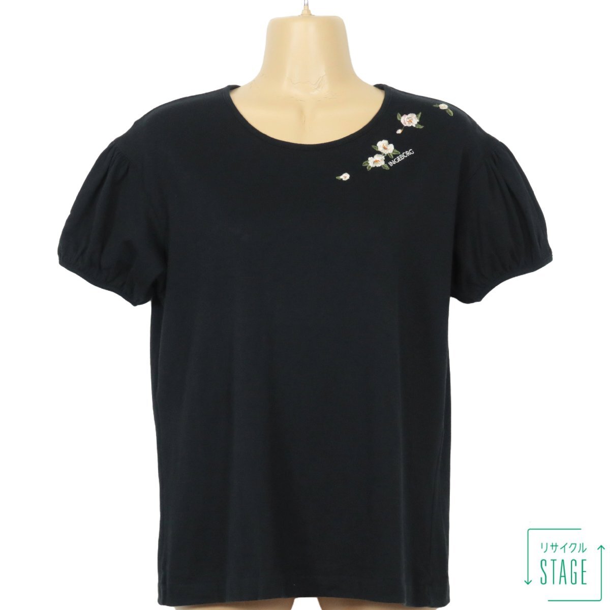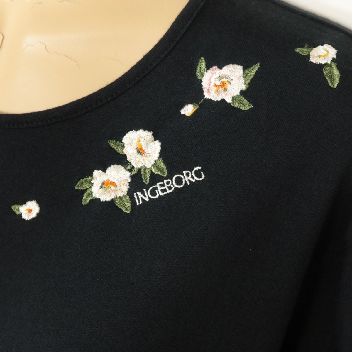 インゲボルグ★フェミニン♪半袖カットソー Tシャツ ふっくら袖 サイズM カメリア&ロゴ刺しゅうがキュート♪ヴィンテージ!黒系 z8300
