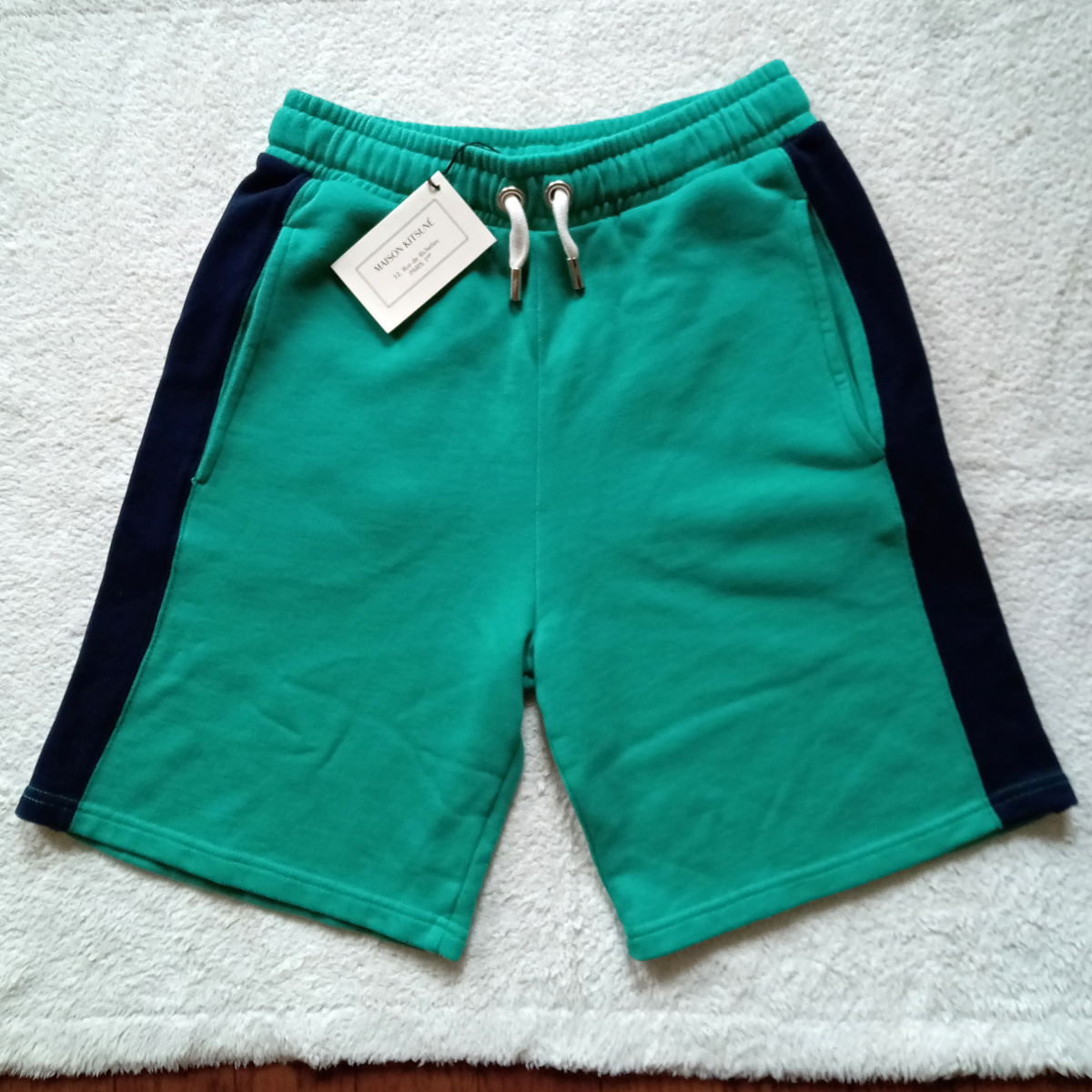 【サイズ】XS 【実寸サイズ(約)】ウエスト33㎝×股上33㎝×股下20㎝ ワタリ幅31㎝×裾幅29㎝ 【カラー】グリーン×ネイビー 【素材】コットン100% 【原産国】ポルトガル 【定価】22,000円(税込) 発送方法について ゆうパック元払い発送以外は承っておりません。 同梱いたします。(何点でも送料は1点です。) 土日祝日の発送はお休みを頂いております。 | |