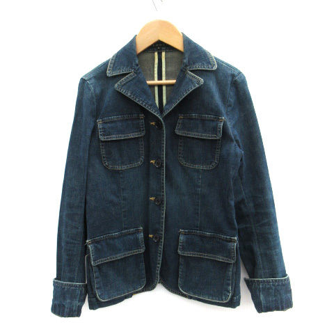 セオリー Theory デニムジャケット カバーオール オープンカラー ミドル丈 2 青 ブルー /SM17 レディース