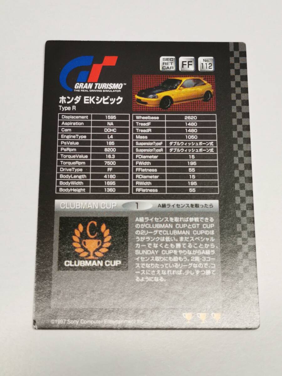 ◆GRAN TURISMO グランツーリスモ ヒントカード「HONDA EK CIVIC Type R」ホンダ EKシビック 112◆SONY 1997年/GT トレーディングカード トレカ CARD/CA車