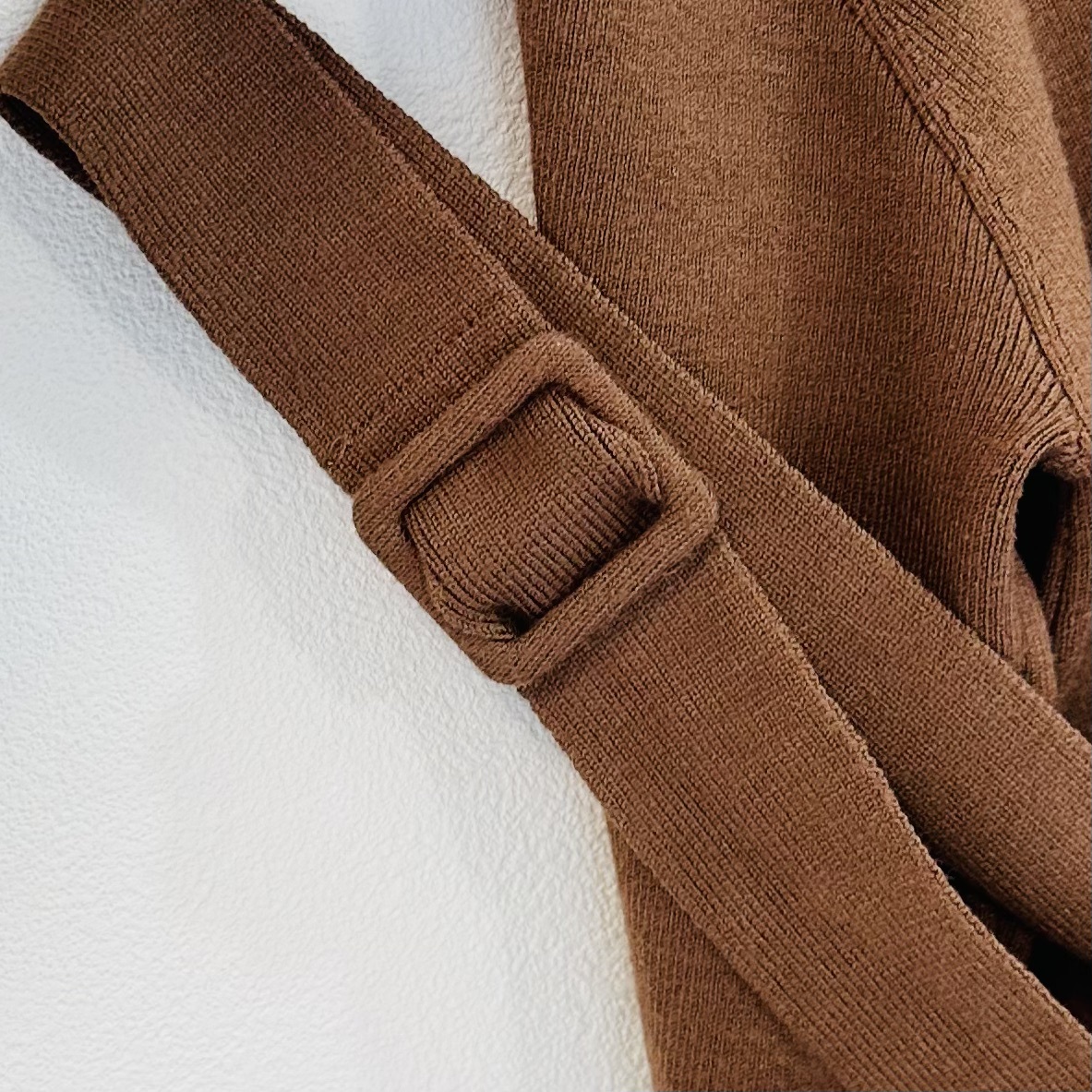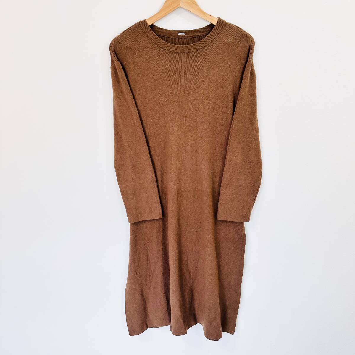 F891ii Mila Owen(ミラ オーウェン) サイズ1(M位) ワンピース ベルト付き クルーネック ブラウン レディース ニットワンピ