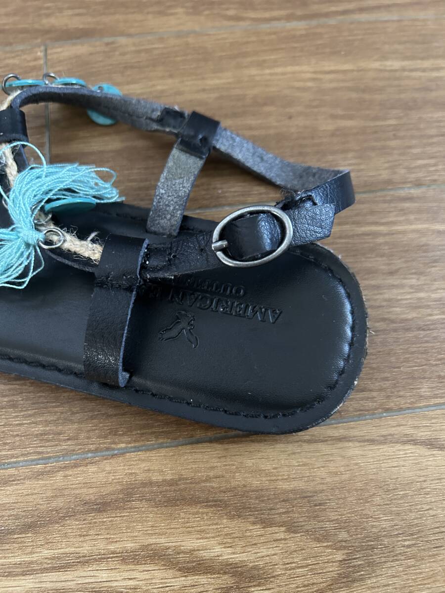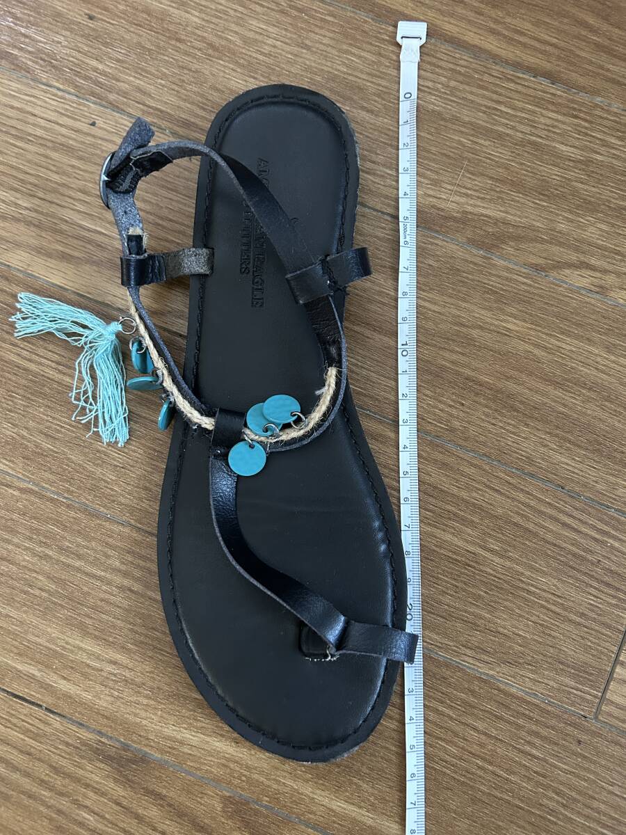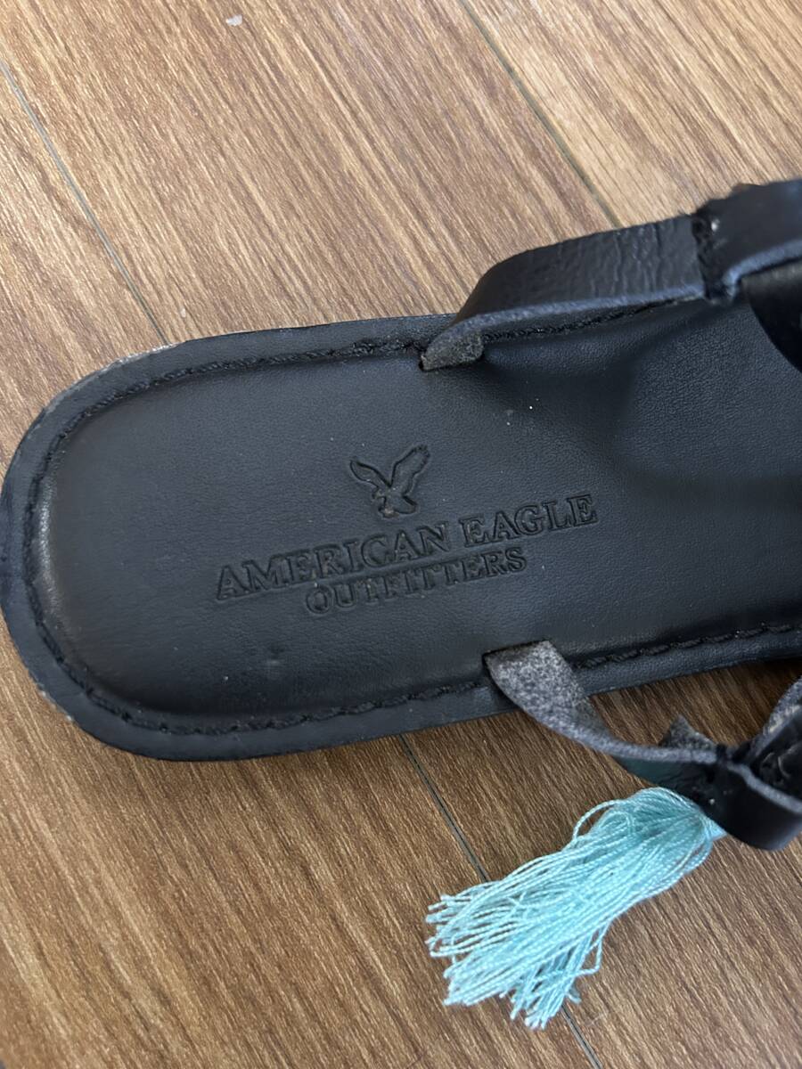 ★アメリカイーグル AMERICAN EAGLE レディースサンダル ブラック黒 本革 サイズ24cm ベルト