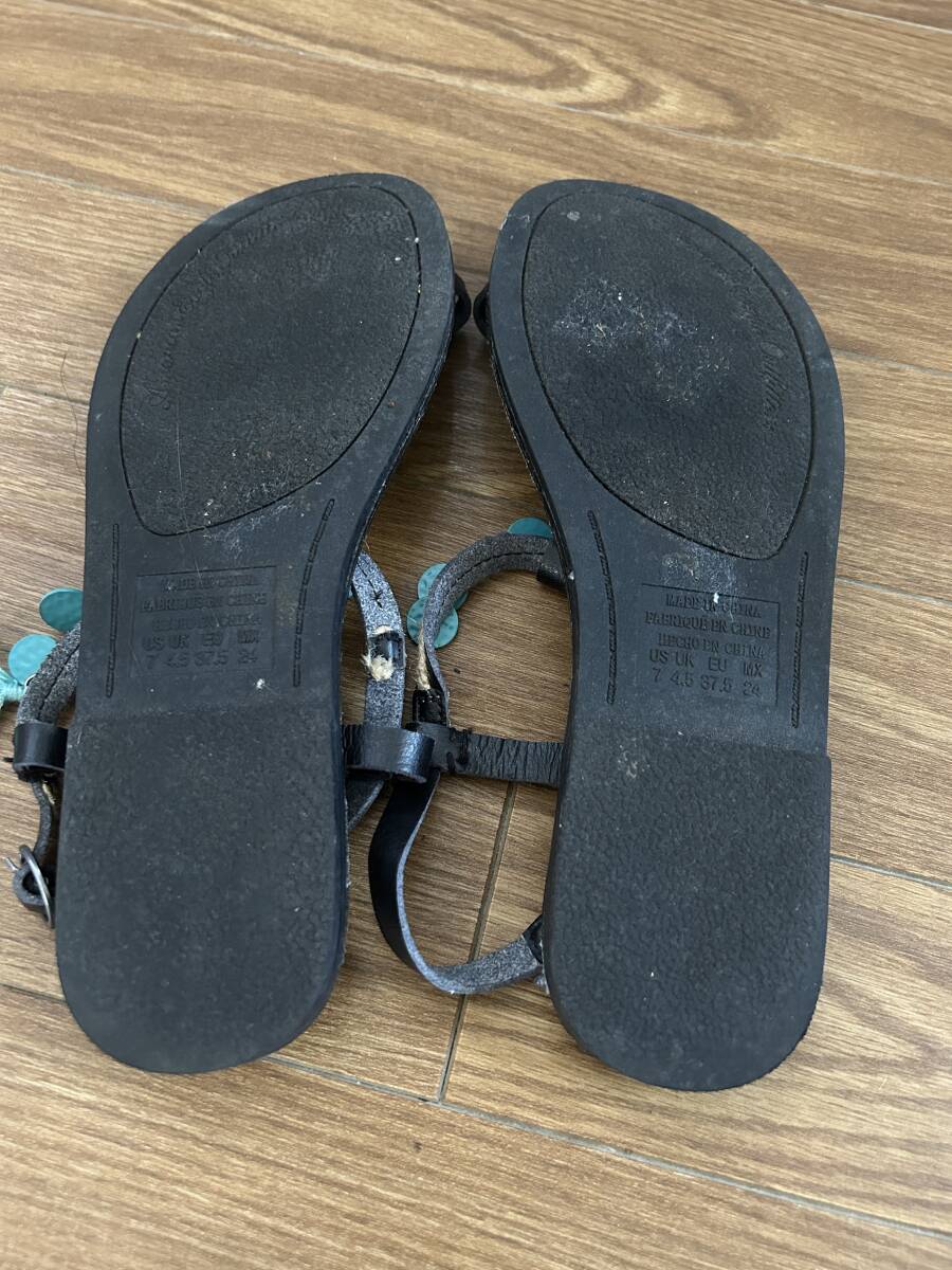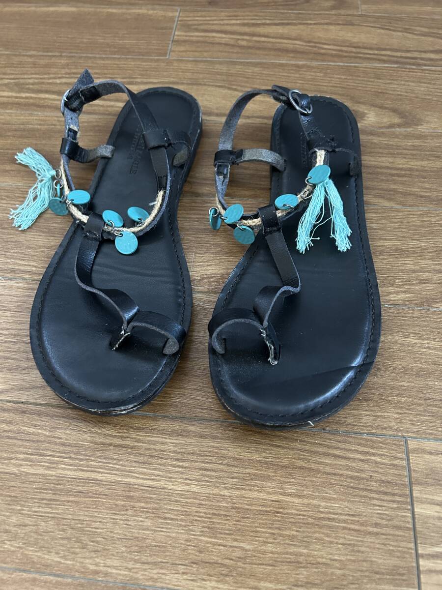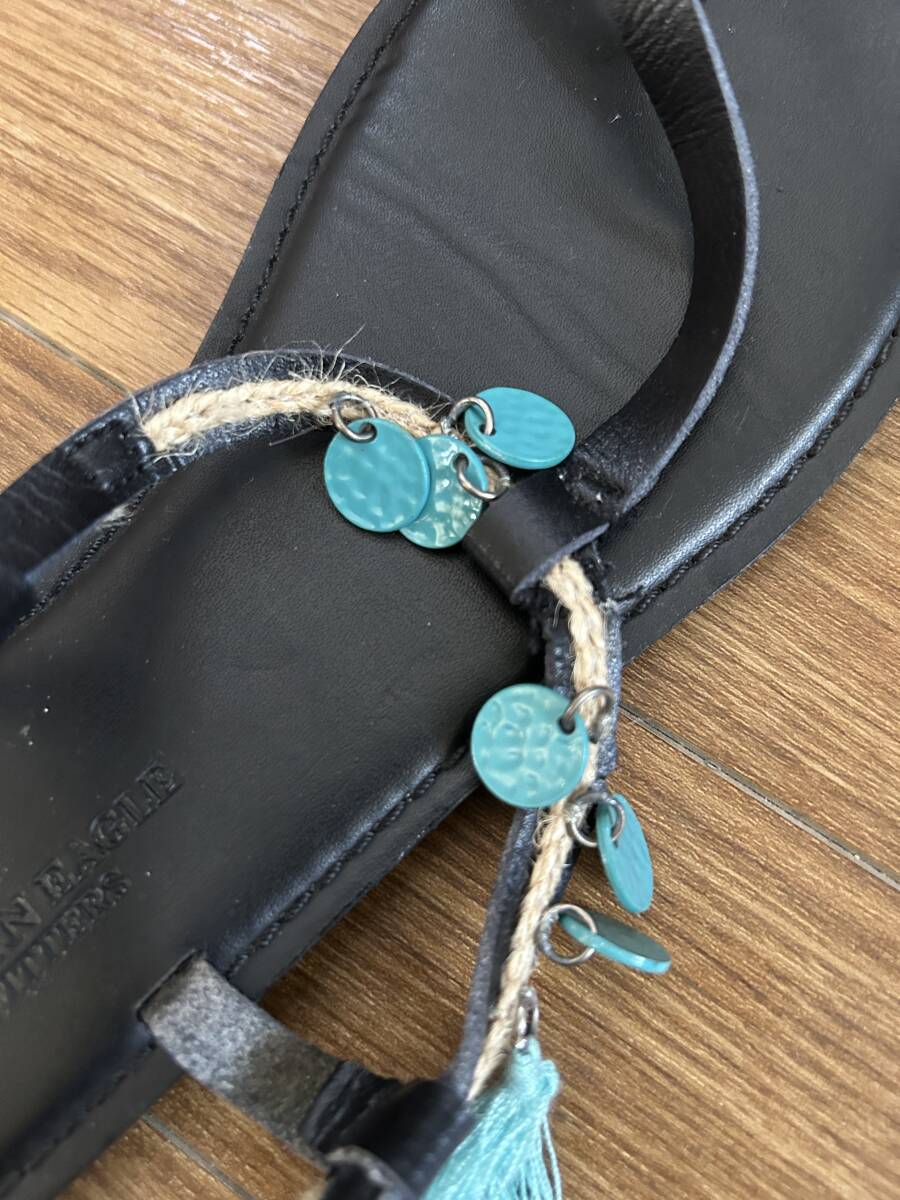 ★アメリカイーグル AMERICAN EAGLE レディースサンダル ブラック黒 本革 サイズ24cm ベルト