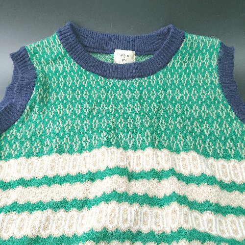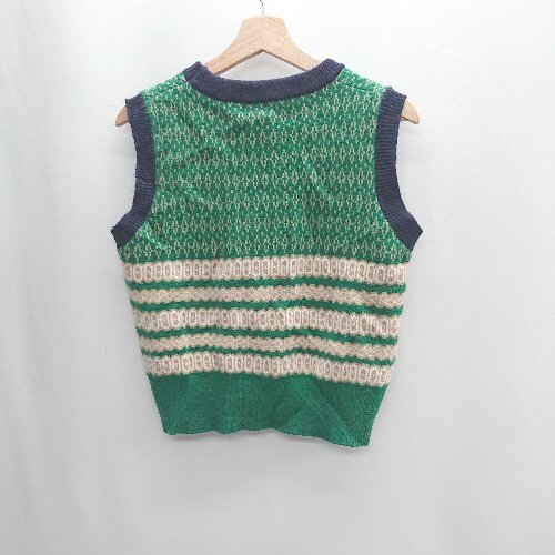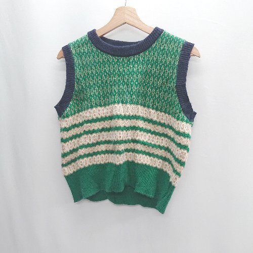 ◇ ready me go! レディーミーゴー! 総柄 ノースリーブ ニット ベスト サイズ表記なし グリーン系 レディース E