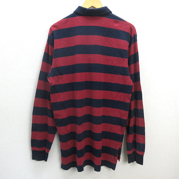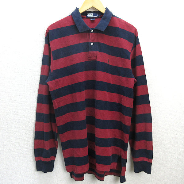 G■ポロラルフローレン/POLORalphLoren 長袖ポロシャツ/鹿の子地 ボーダー柄【L】赤紺/men's/23【中古】■