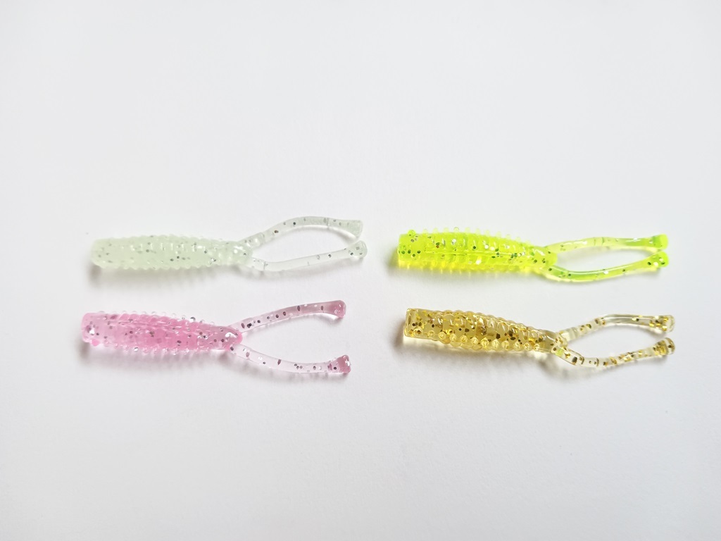 微細な波動でアジを誘う、ツインテールになったアジングワームです。