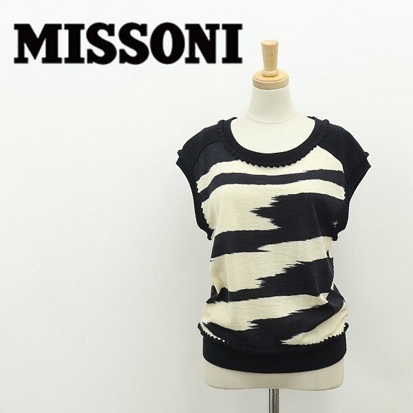 イタリア製◆MISSONI ミッソーニ 総柄 ウール ノースリーブ ニット セーター トップス ブラック×アイボリー 40 | |
