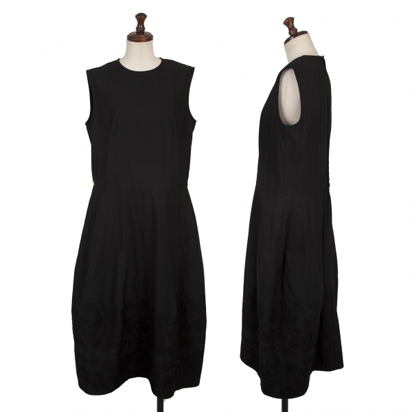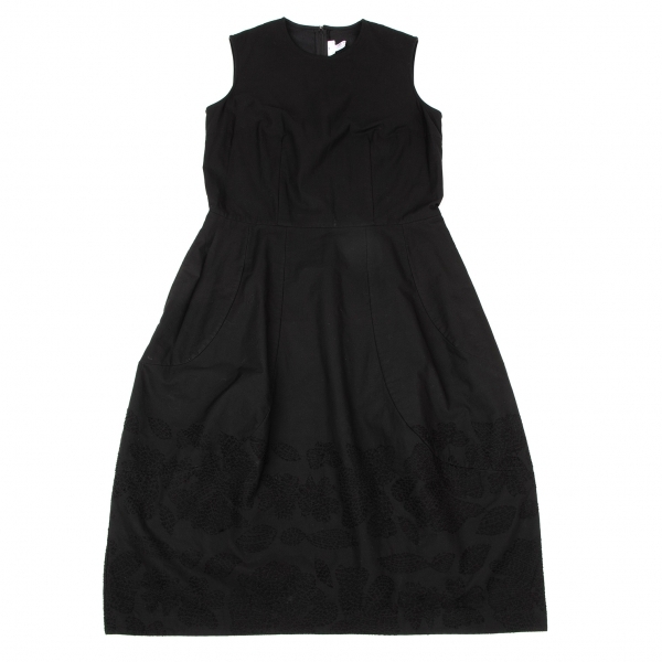 | コムコム コムデギャルソンCOMME des GARCONS フラワー刺繍ノースリーブコットンワンピース 黒M |