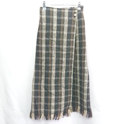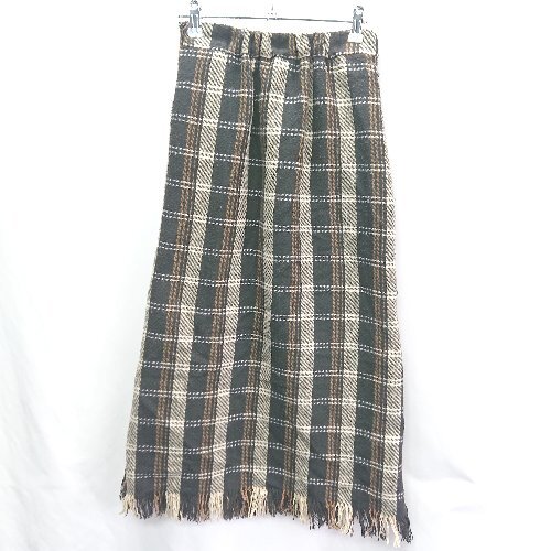 ◇ PAGEBOY チェック柄 フリンジ装飾 ロング丈 タイト スカート サイズ表記なし ブラック ベージュ ブラウン レディース E