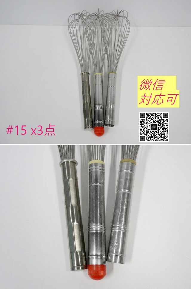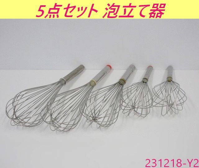 | 梱包サイズ:W110xD135xH475(mm)/1.1kg ※送料はご購入後、ご連絡致します※ 泡だて器15号サイズ、5点セットです。 ホテイ印、EBM、フジボシ印とメーカー不明が混ざっています。 丈夫なステンレス製なので耐久性に優れています。 5点セットでの販売となり、ばら売りは対応しておりません。 寸法は当方が手作業にて計っております。多少の誤差はご容赦ください。 商品の現物確認や直接のお引取りも大歓迎です。お気軽にお問い合わせ下さい。 ◆仕様