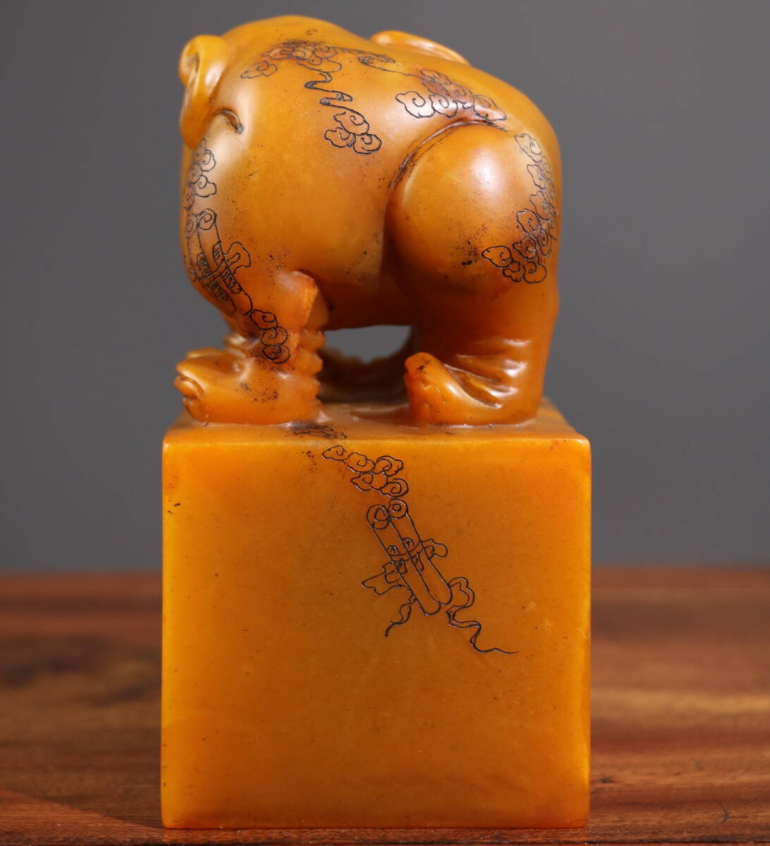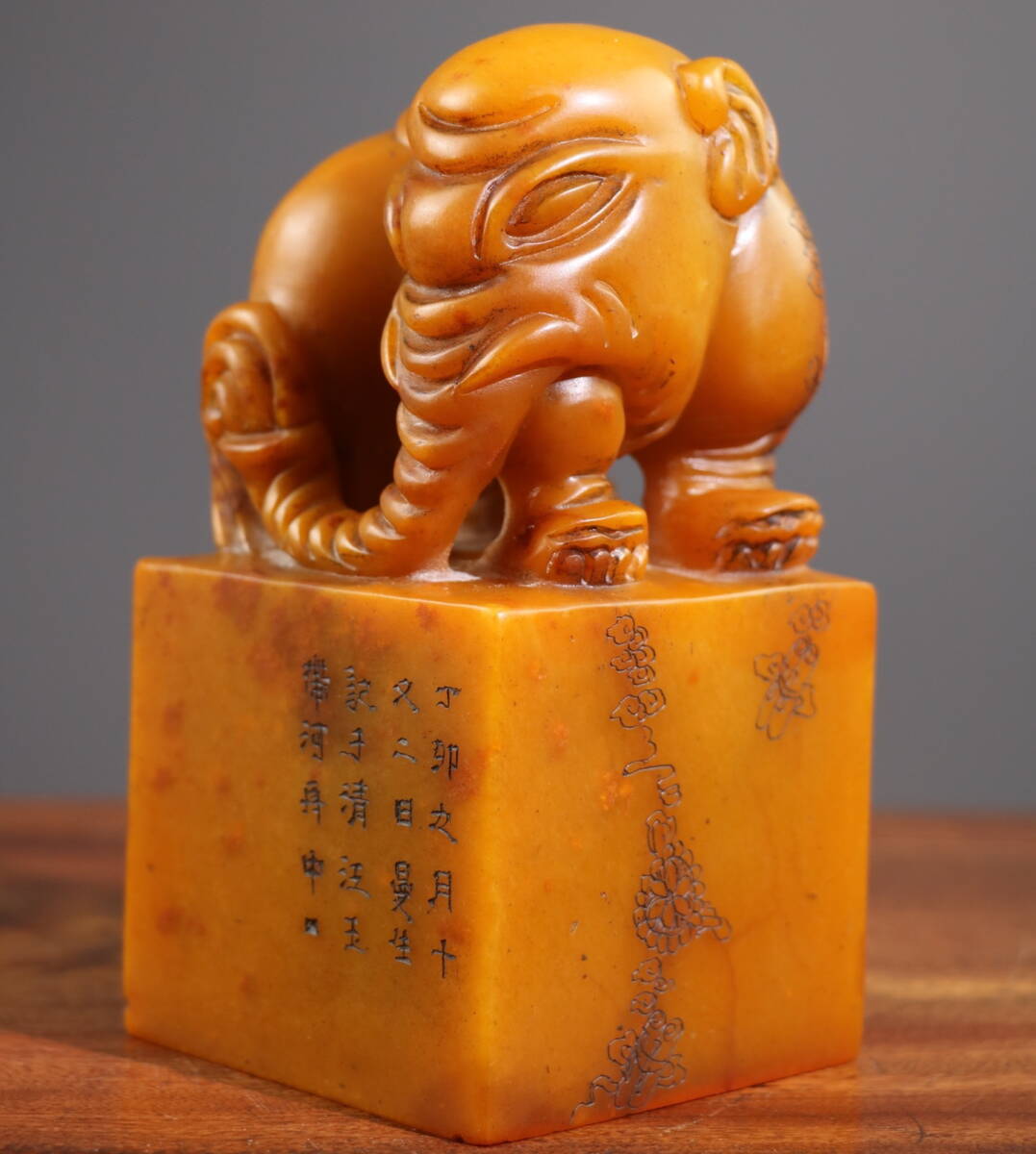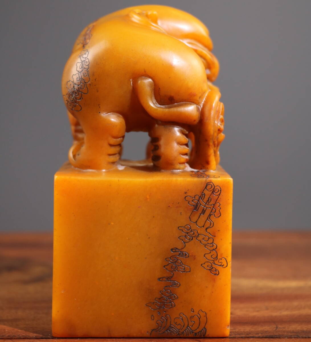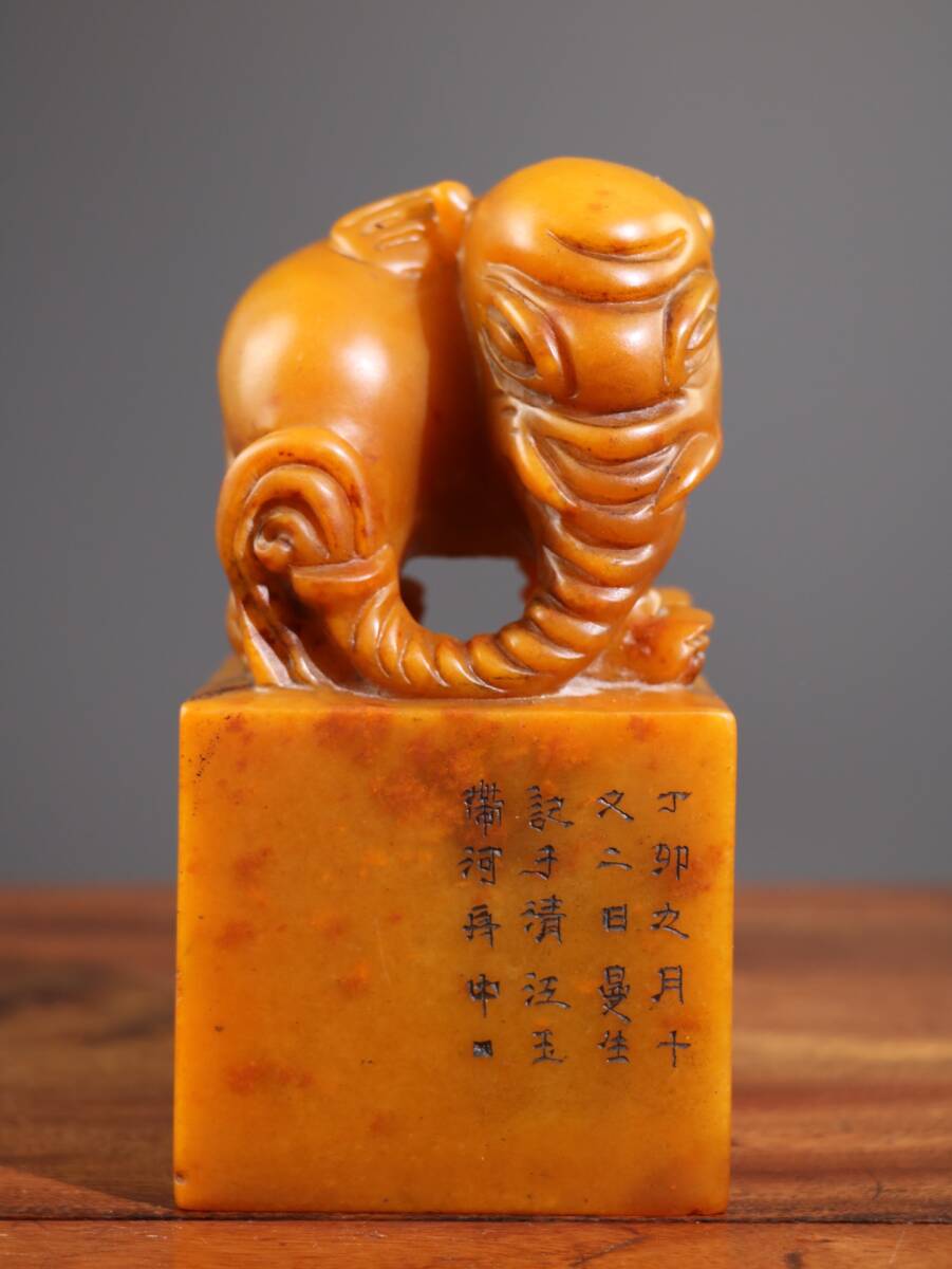 寿山石 珍藏 中国 清代 【太平有象】閑章 印鑑 文房具 書道具 田黄石 手彫り 細密彫 置物 賞物 古美術品 WYX78
