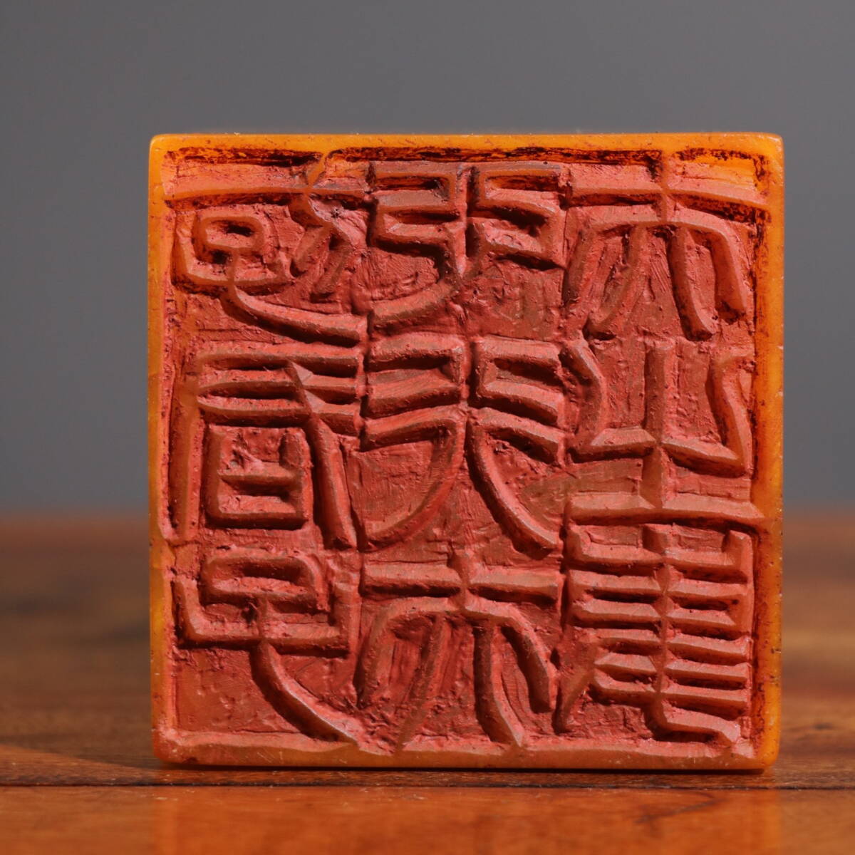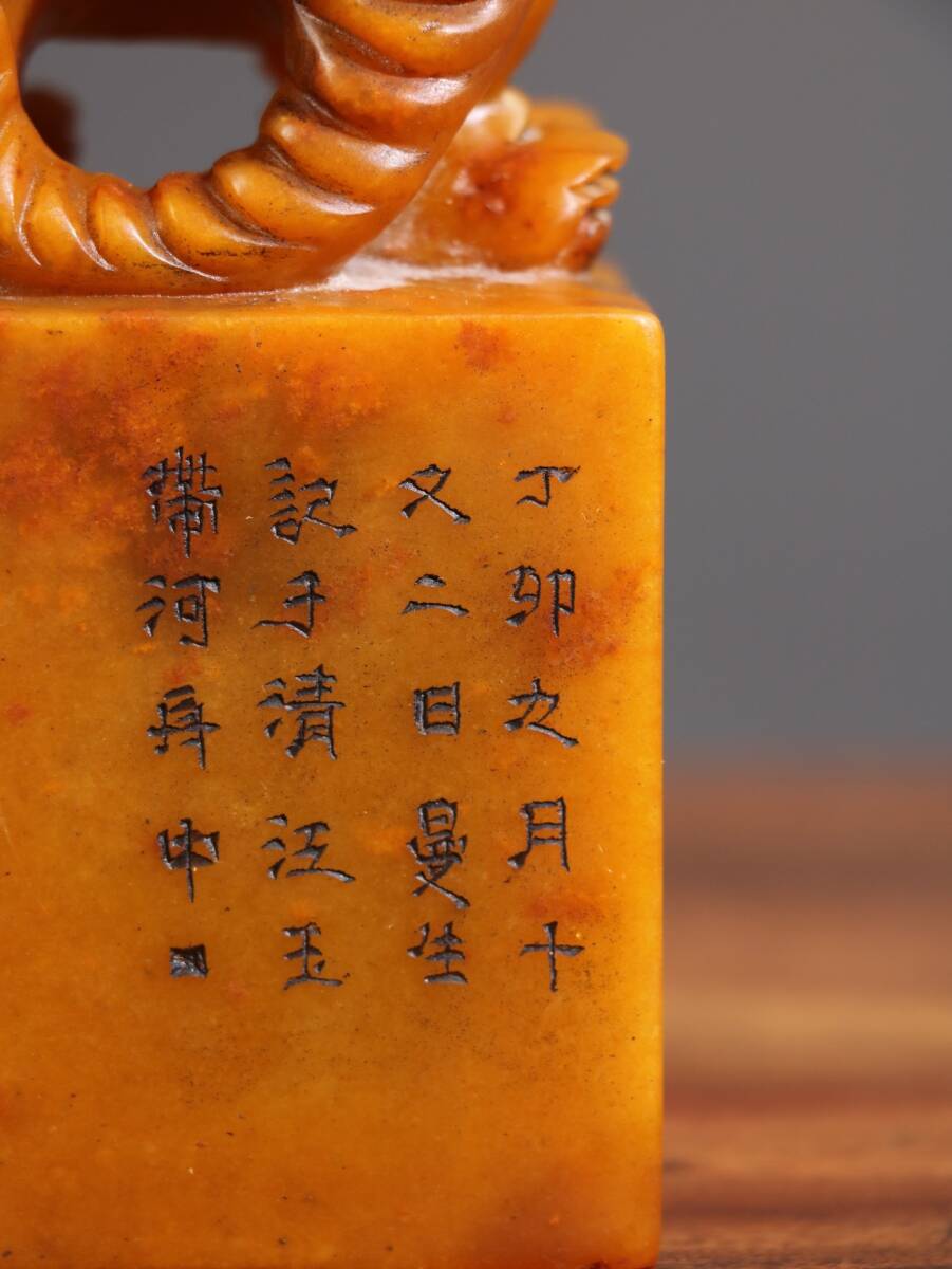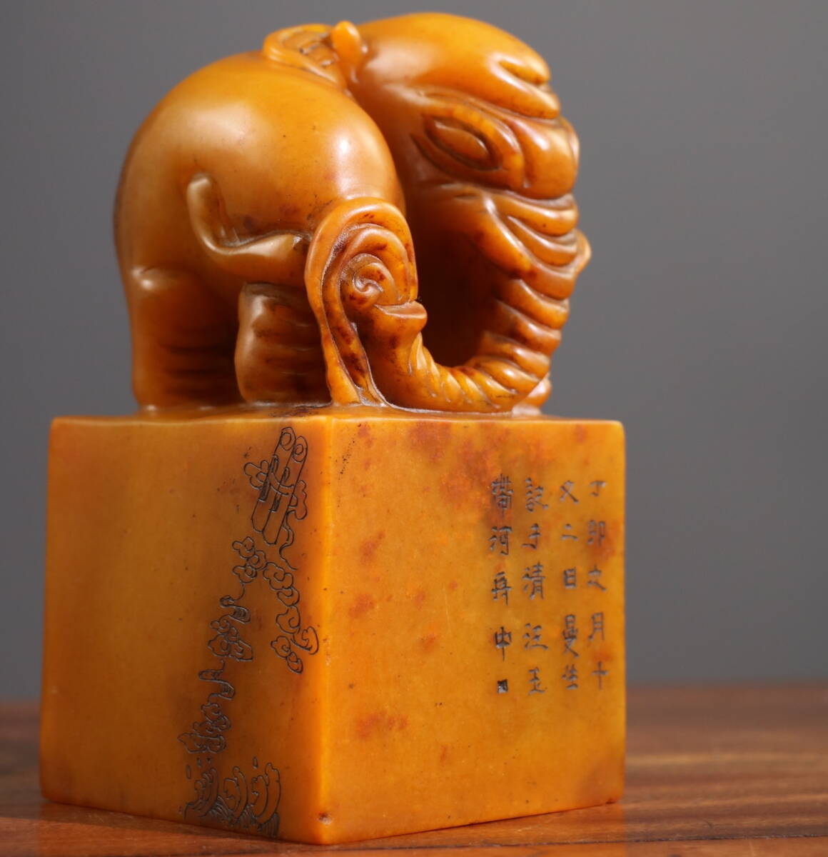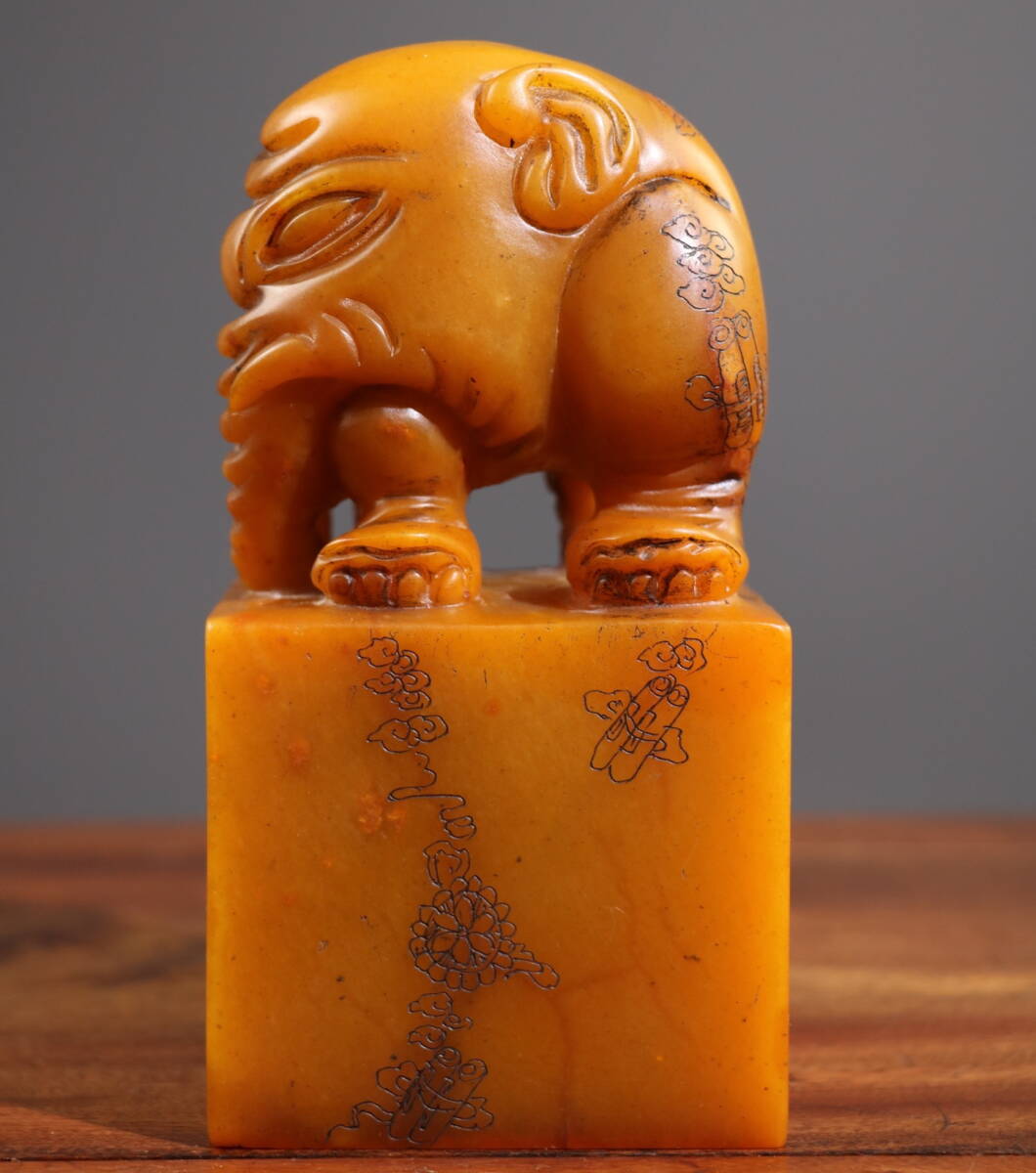 寿山石 珍藏 中国 清代 【太平有象】閑章 印鑑 文房具 書道具 田黄石 手彫り 細密彫 置物 賞物 古美術品 WYX78