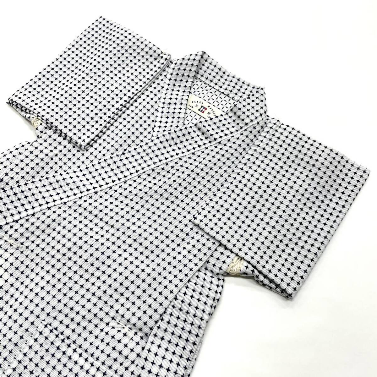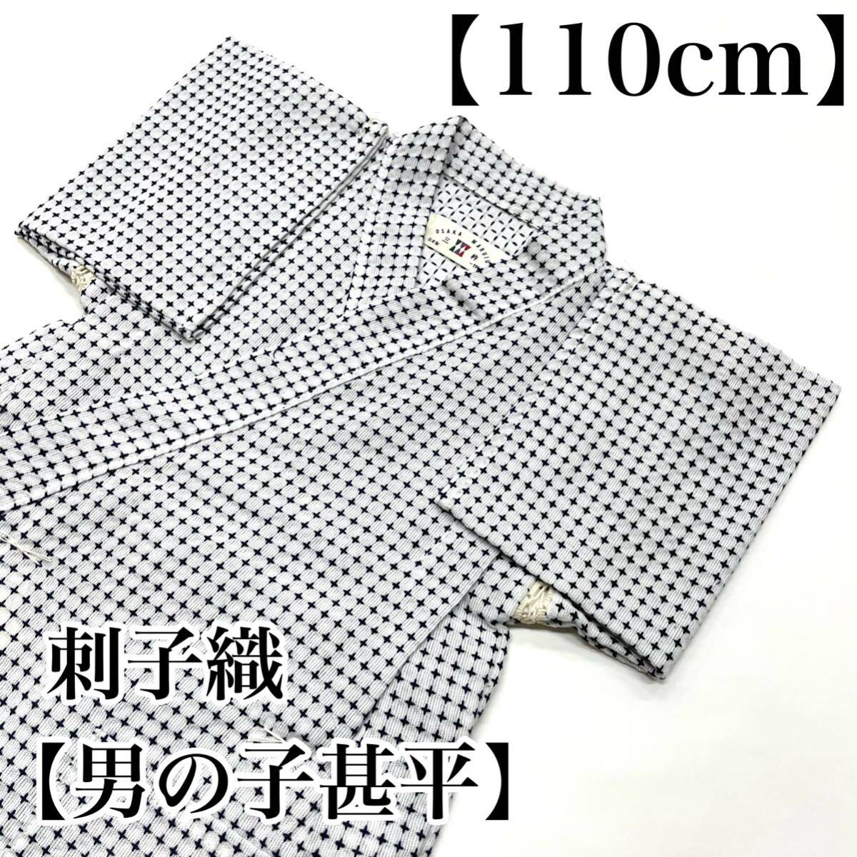 110 刺子織 子供甚平 日本製 男の子 甚平 子供甚平 男の子 甚平 子供用甚平 男の子用 日本製 綿 刺し子 刺子 110cm 110センチ 白 白色