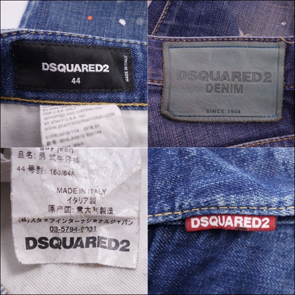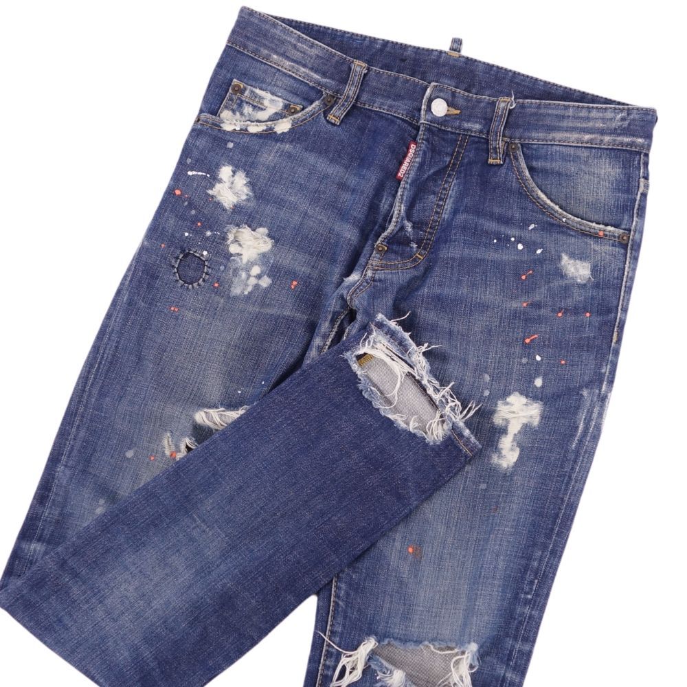 | 美品 ディースクエアード DSQUARED2 パンツ デニムパンツ ダメージ加工 コットン ボトムス メンズ 44 インディゴブルー |