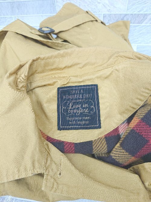 ◇ Live in comfort リブインコンフォート 裏地フリース 長袖 ステンカラーコート サイズLL マスタード系 レディース P