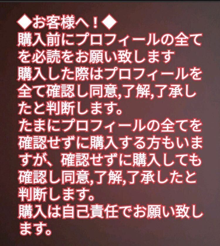 ○商品説明,商品画像,プロフィールを全て確認の上 ご理解,承諾,合意出来る方のみ購入をお願い致します。