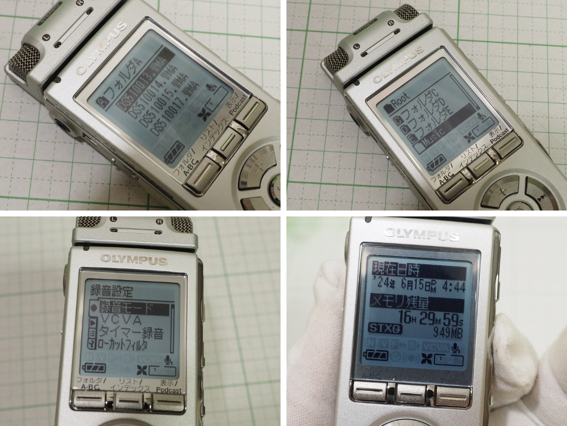 商品の個別チェック項目 (問題なしや該当なしは - 印) 作動チェックに関する項目 【録音】 〇 【マイク端子】 〇(手持ちの外部マイクを使用してチェックしました。外部マイクは付属しません。) 【再生】 〇 【イヤホン端子】 〇 (手持ちのイヤホンを使用してチェックしました。イヤホンは付属しません。) 【PC接続】 〇(付属のコードを使用:コードは純正品ではありません) 【充電】 充電機能なし 【本体の傷】 ほぼ無傷です 【液晶面の傷】 液晶面もほぼ無傷です 【各ボタンの反応】 〇 【電池の付属】 なし(作動チェックで使用した単4電池2本は付属しません) 【電池ボックス内】 腐食なし 【データの削除】 〇削除済み 【ラジオ機能】 ラジオ機能はありません |