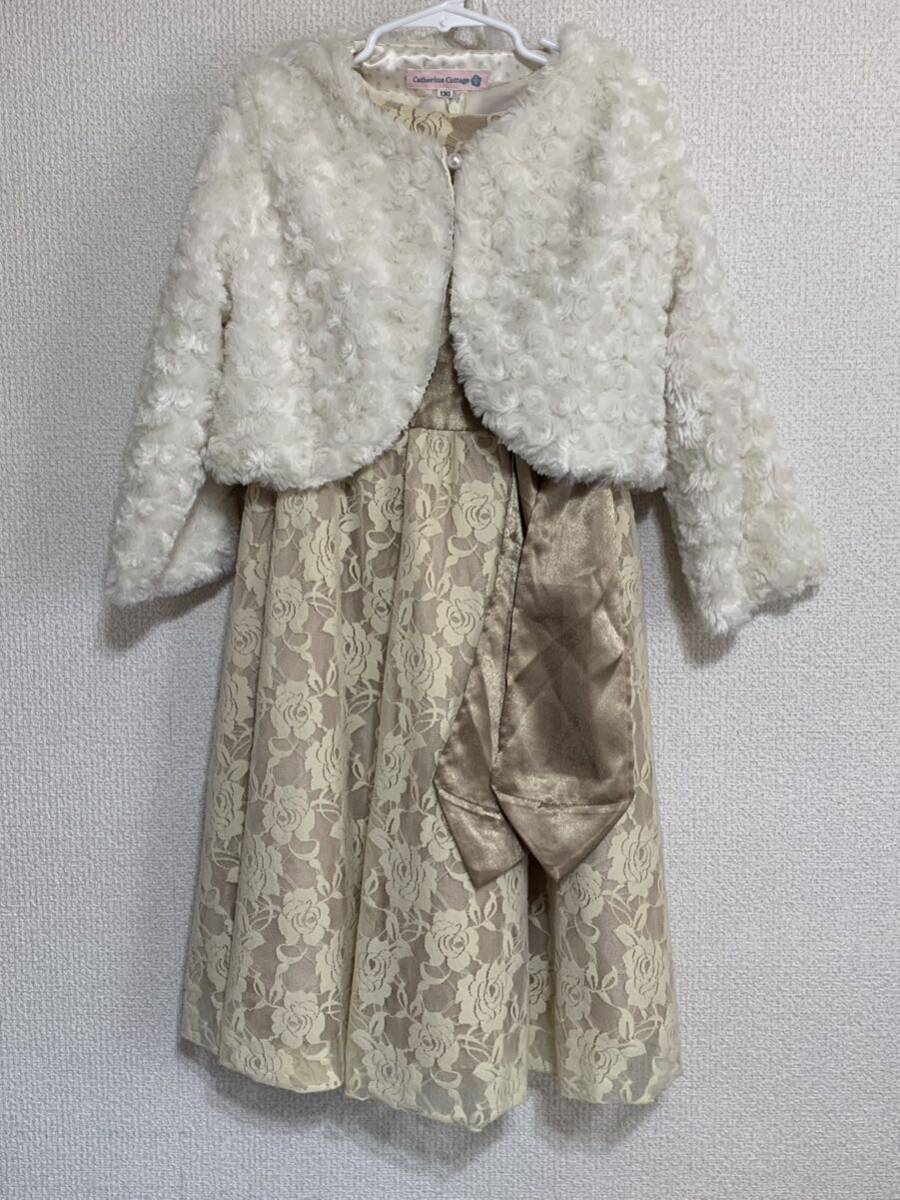 キャサリンコテージ ドレス&ボレロ 130cm 白バラ ベージュ 発表会