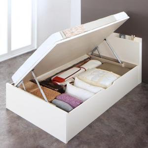 お客様組立 国産跳ね上げ収納ベッド ホワイト 薄型スタンダードポケットコイルマットレス付き 横開き セミダブル 深さグランド